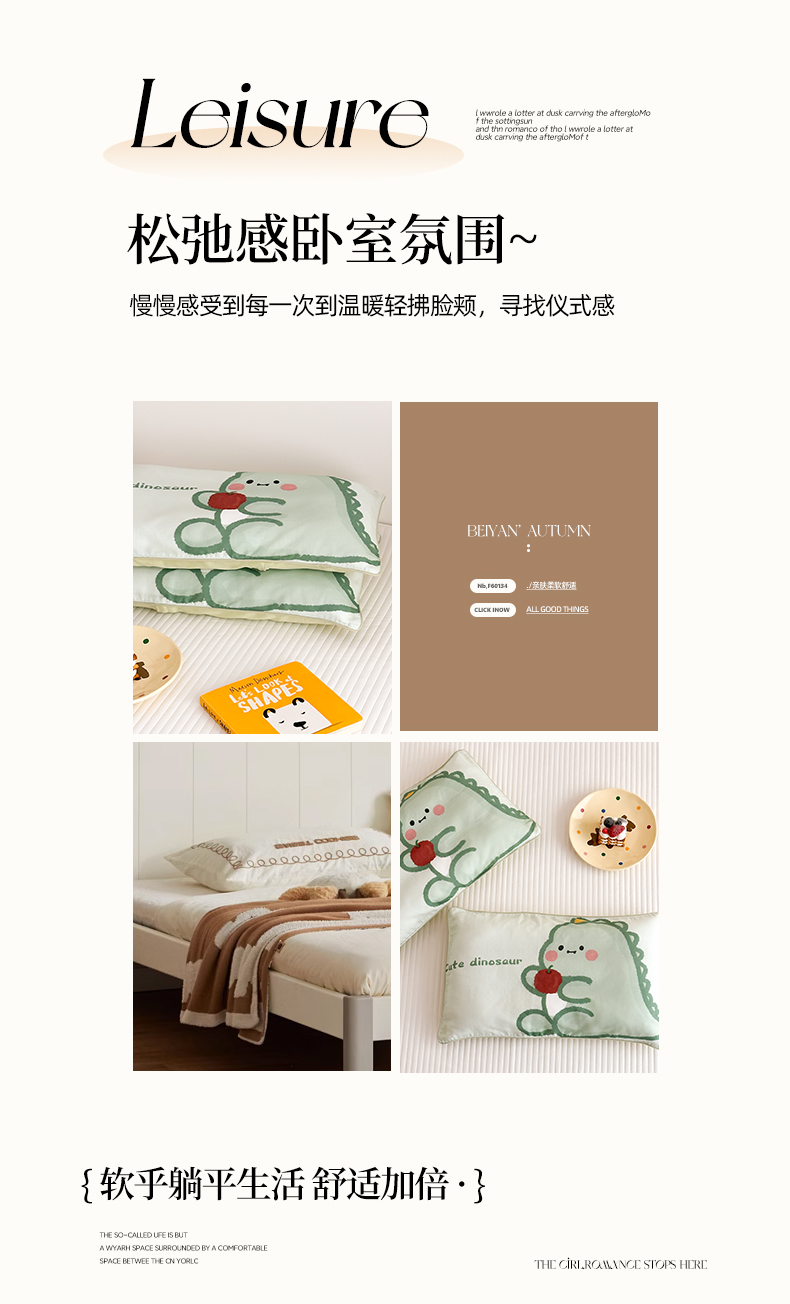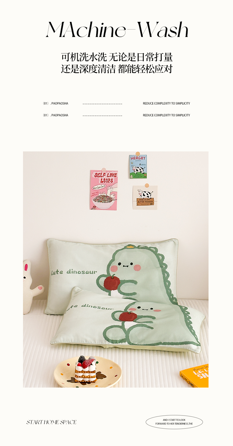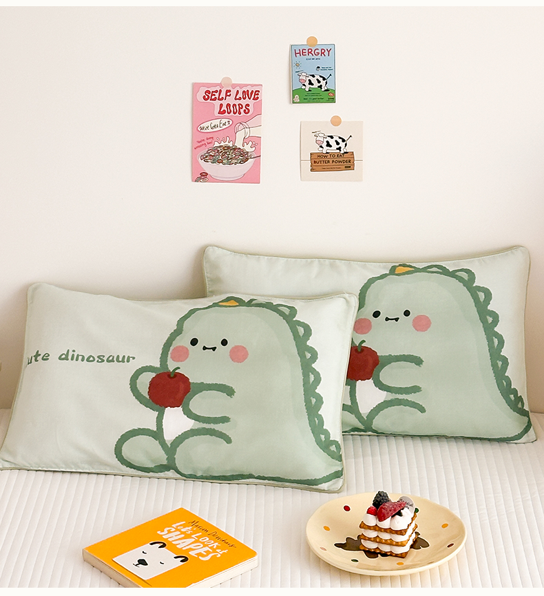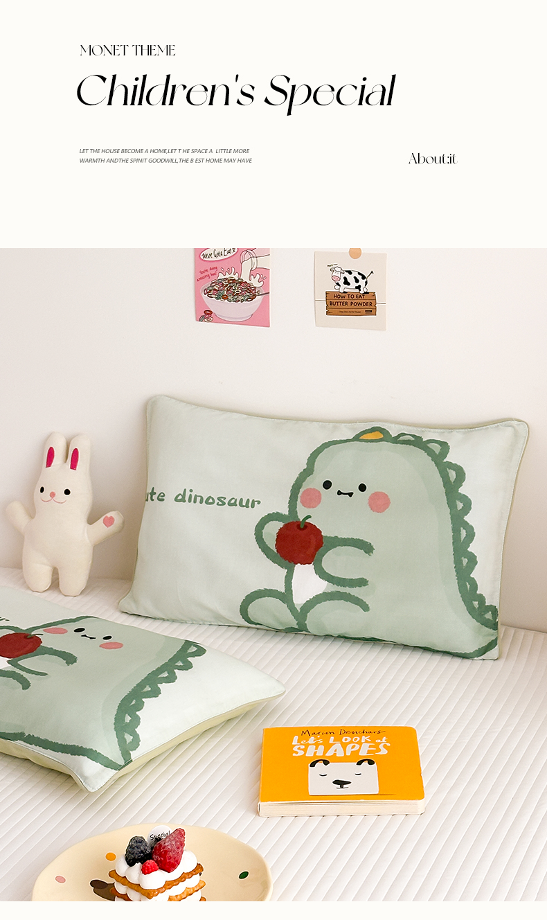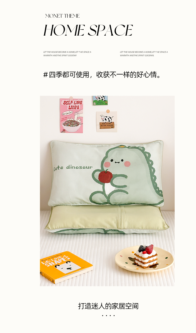 商品名称:嗨生活 2026新款全棉纯棉双层纱大版枕套儿童枕套幼儿园枕套枕芯单品枕套枕套单件 奶油恐龙