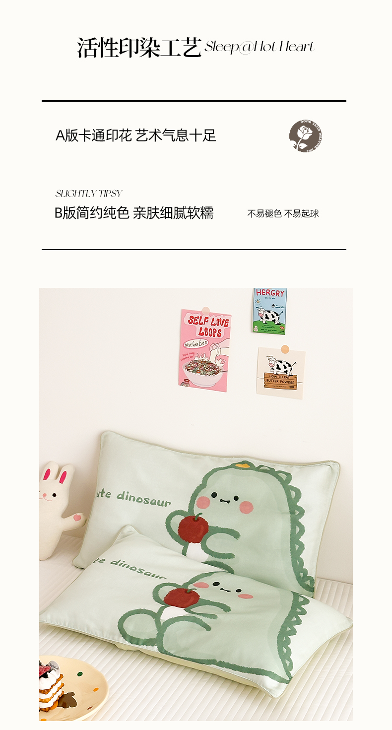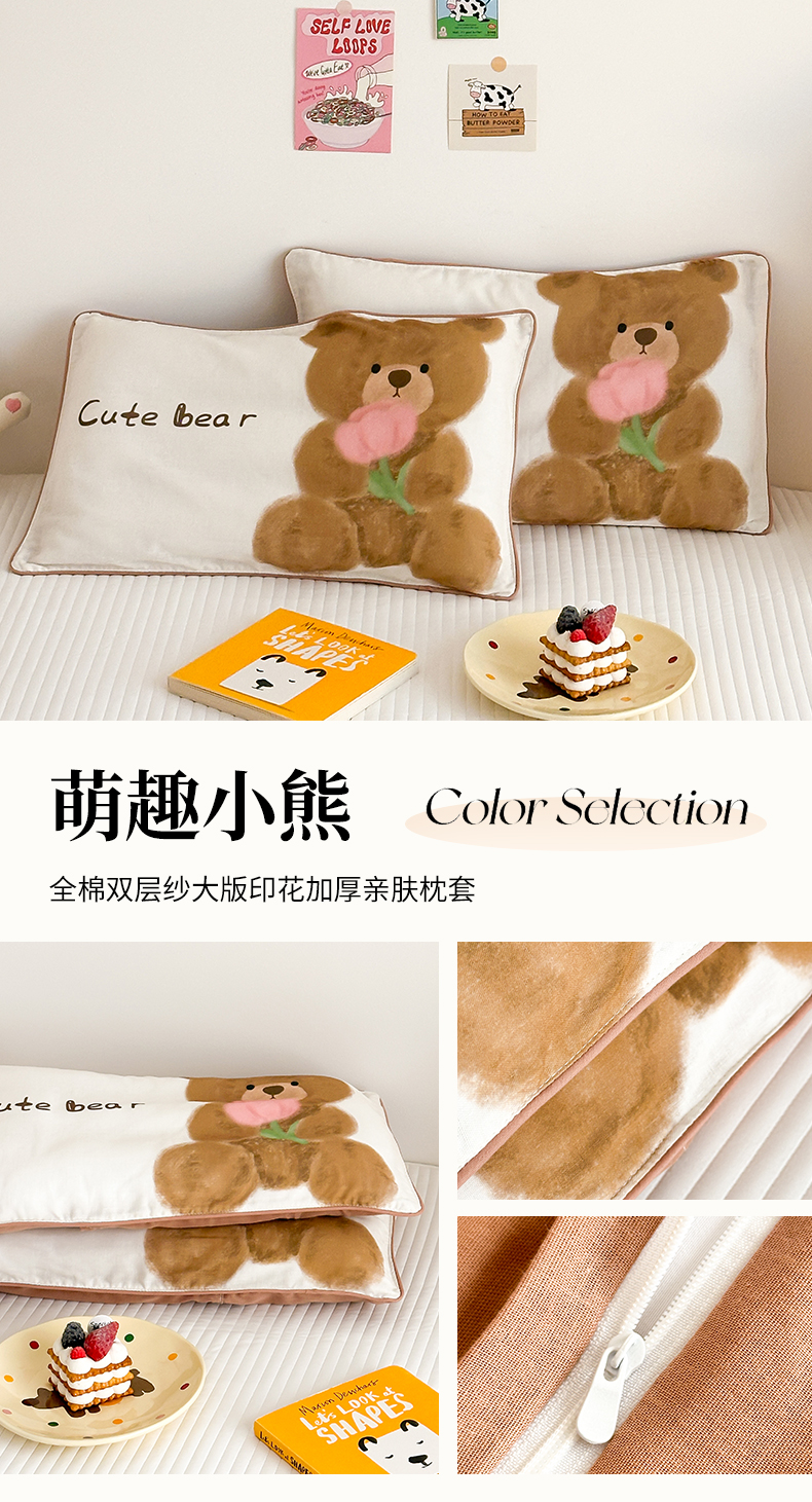 (总)嗨生活 2026新款全棉纯棉双层纱大版枕套儿童枕套幼儿园枕套枕芯单品枕套枕套单件,大熊猫,哈喽小象,萌趣小熊,奶油恐龙,长耳兔,组合图仅供展示不可下单