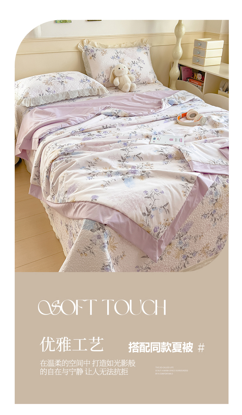 当前位置: 91家纺网 > 商品网购 > 床上用品 > 床盖 > 叠派家纺 2026新款A类印花慕丝绵花边款床盖系列(抽空压缩可供跨境)提供买家秀 莫兰迪+浅紫