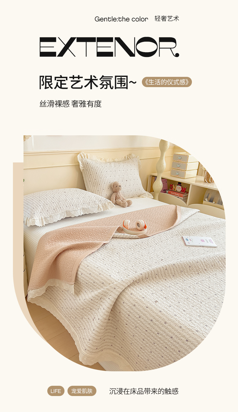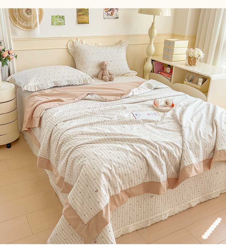 (总)叠派家纺 2026新款A类印花慕丝绵花边款床盖系列(抽空压缩可供跨境)提供买家秀,莫兰迪+浅紫,洛可可+粉,蓝庭叙+灰,锦芙+驼,金兰+黄,凡尔赛+粉,蓝漪+蓝,洛雅+黛紫,墨芳+灰,清漫+绿,波点序章+驼,青妍+粉,星心兔语+粉,熊兔叙+蓝,云菇森林+浅紫,木马童谣+灰,蛋糕熊+绿,甜梦熊+浅粉