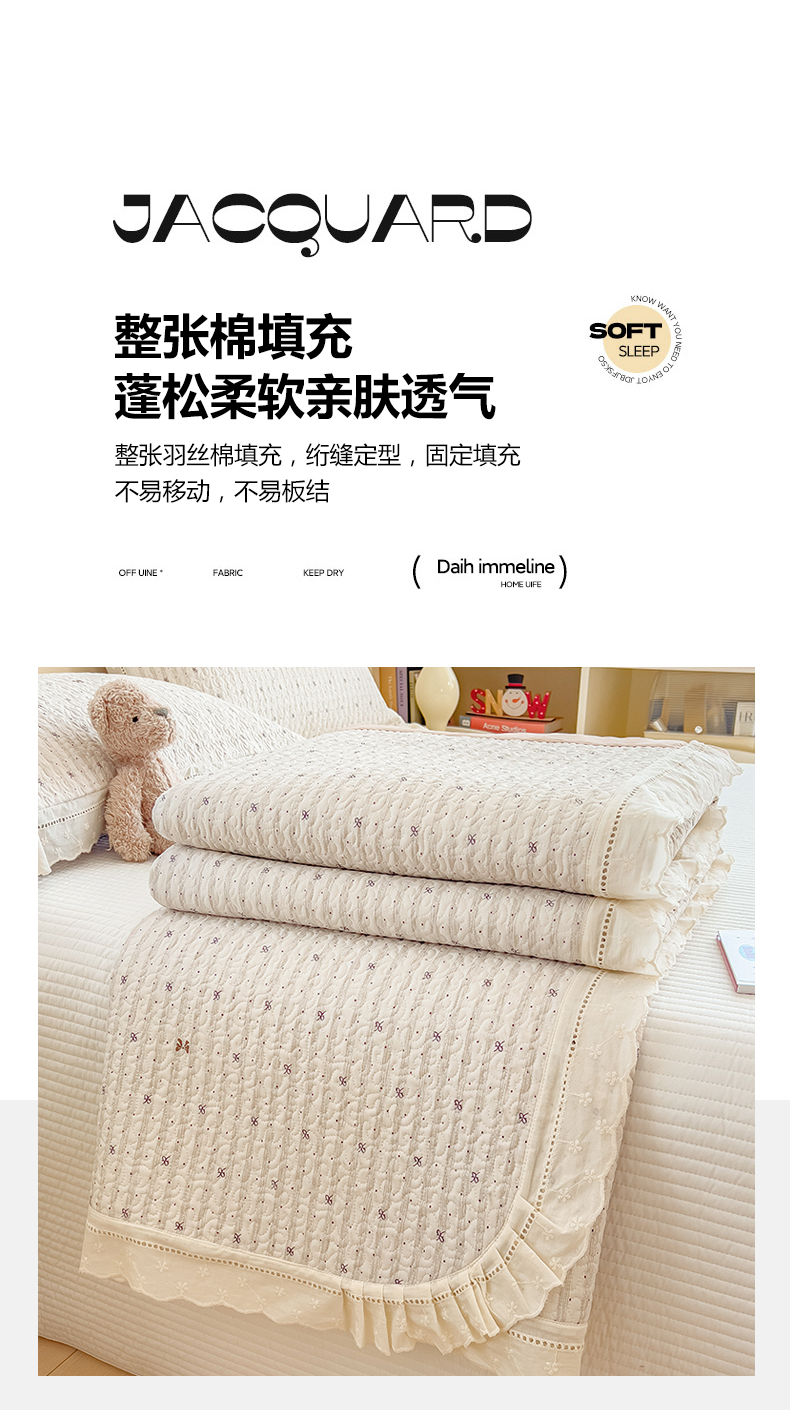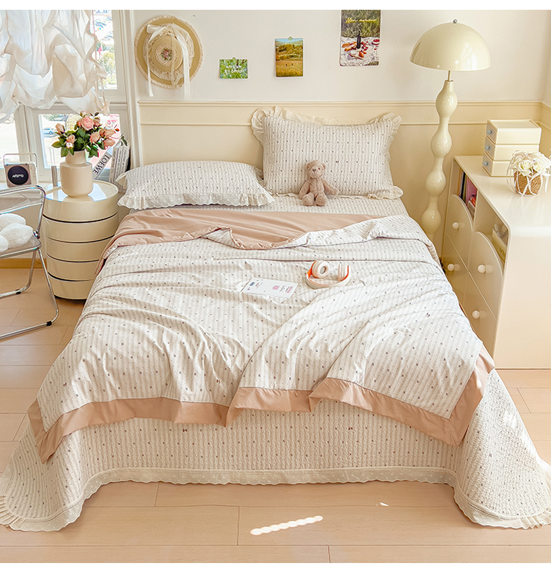 叠派家纺 2026新款A类印花慕丝绵花边款床盖系列(抽空压缩可供跨境)提供买家秀 波点序章+驼