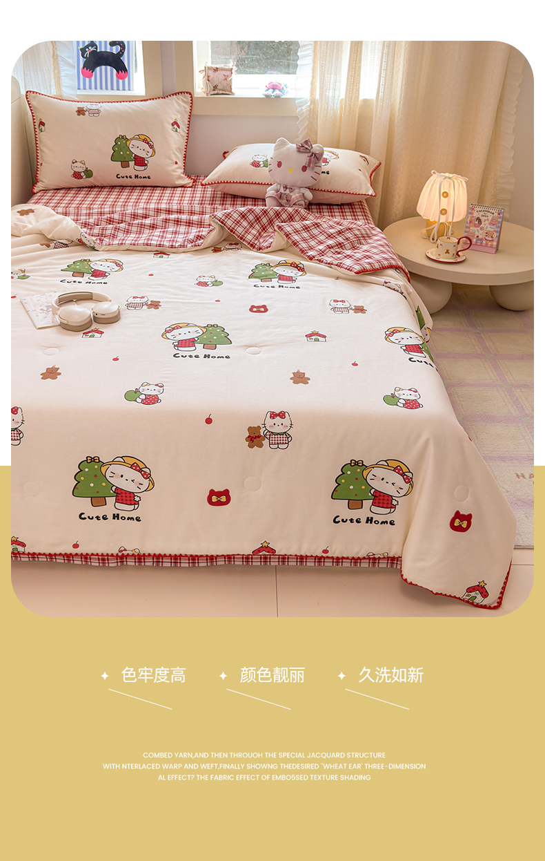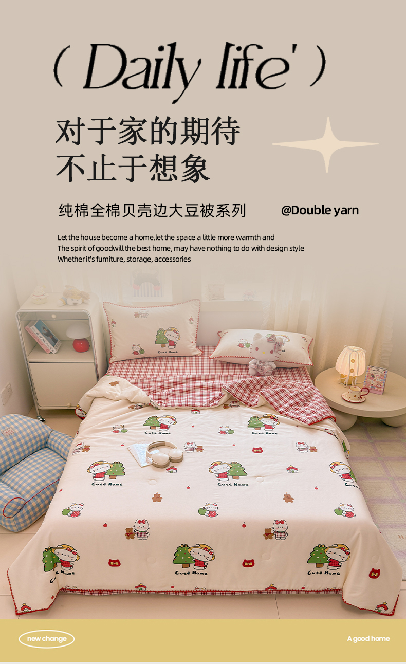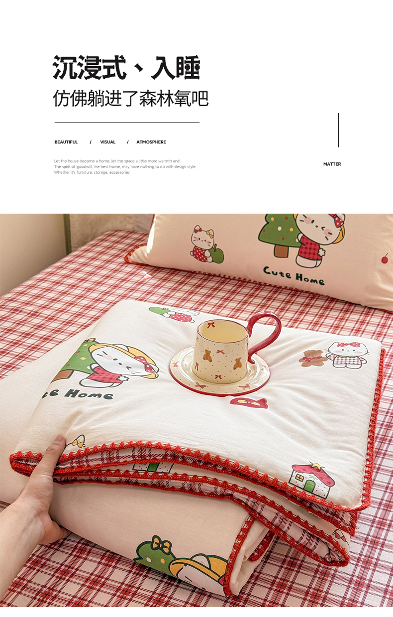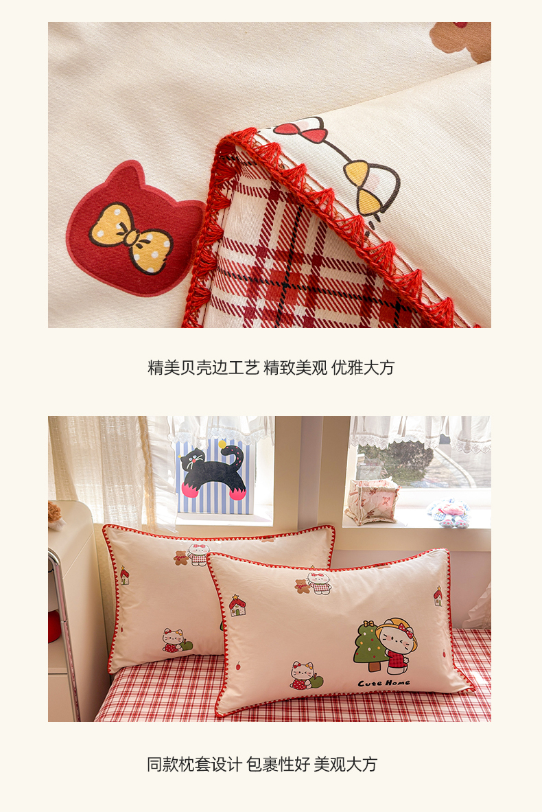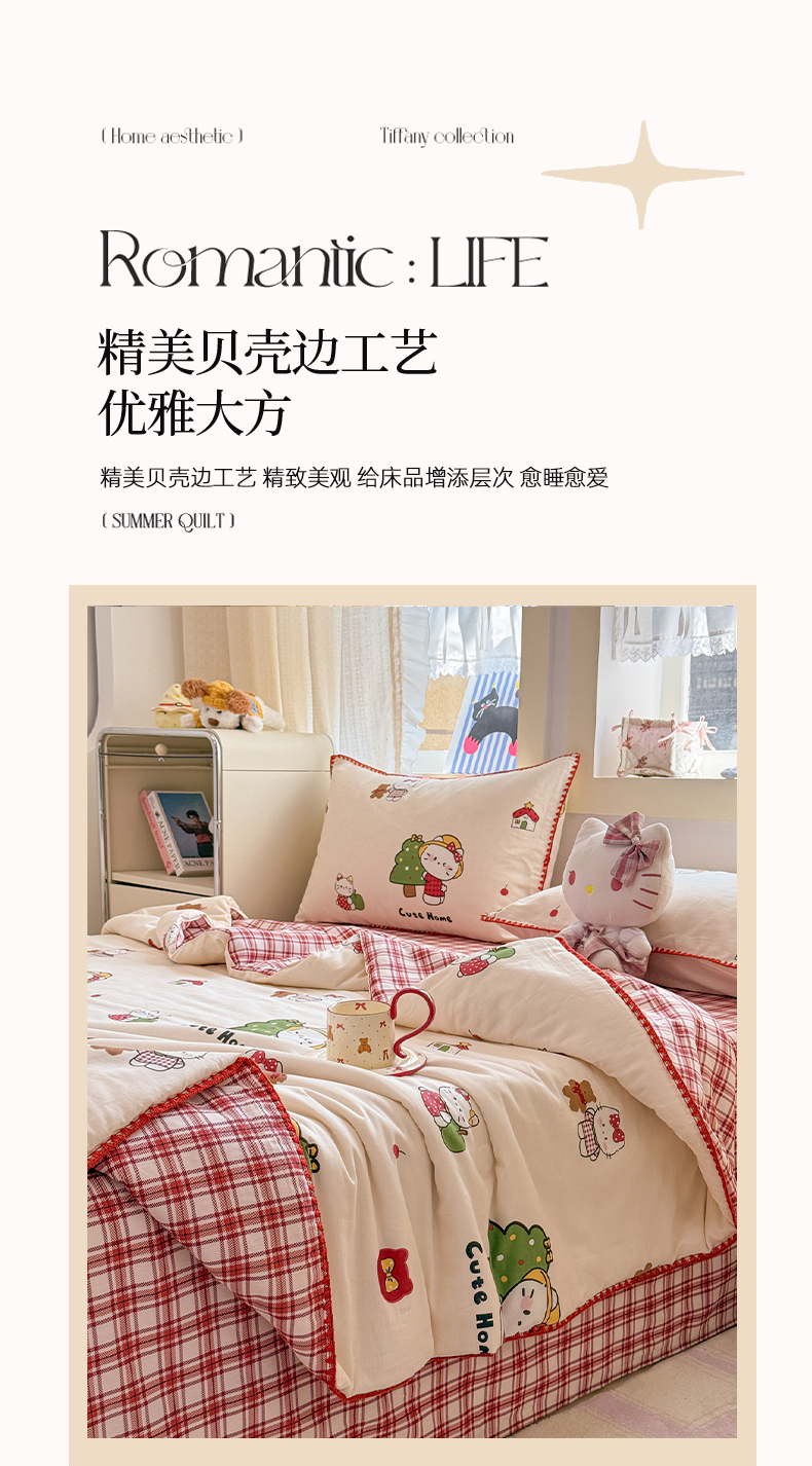 当前位置: 91家纺网 > 商品网购 > 床品套件 > 四件套 > 全棉普通四件套 > 简宜家居(朝初家纺) 2026新款全棉花卉卡通系列贝壳边夏被四件套 红莓树屋