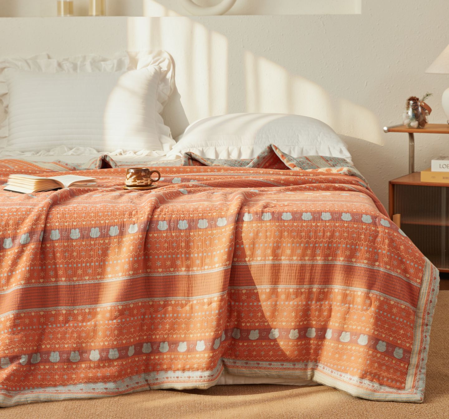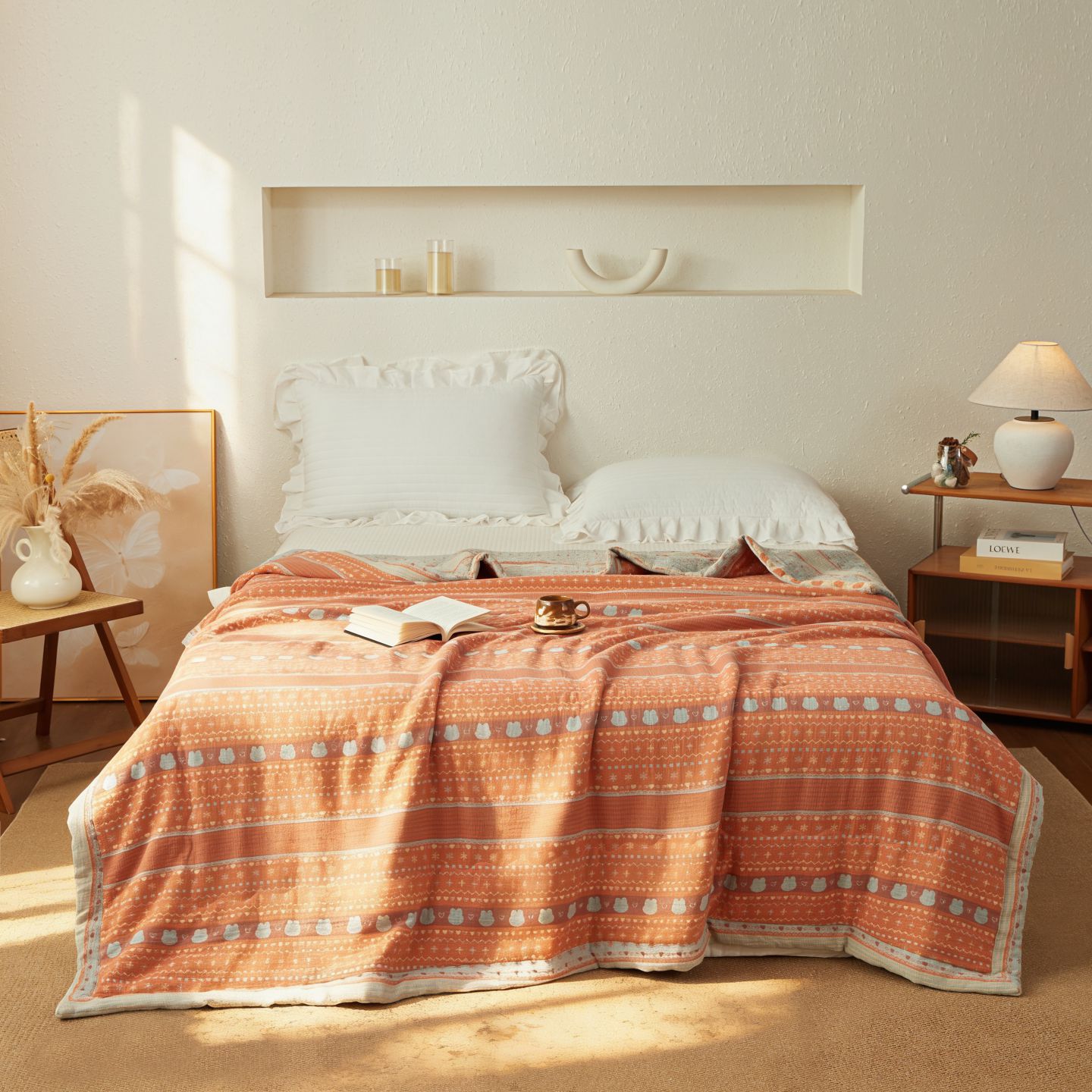 (总)睡棉坊 2026新款全棉色织提花双层纱夏被全棉夏凉被里外全棉天然棉花被,费尔岛兔-桔蓝,吉祥小马-粉,金语谣-紫黄,锦上添花-提夫尼蓝,山野来信-蜜粉绿,舞青春-桔