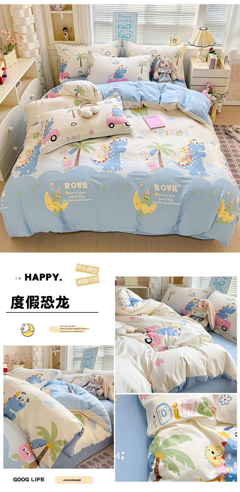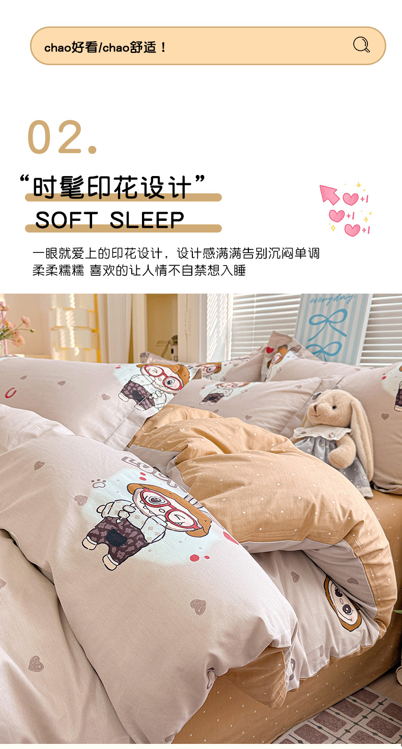 当前位置: 91家纺网 > 商品网购 > 床品套件 > 四件套 > 全棉普通四件套 > 董成龙家纺 2026春夏新款100%全棉纯棉印花四件套印花卡通系列三件套(喷气工艺) 青梅温茶-绿