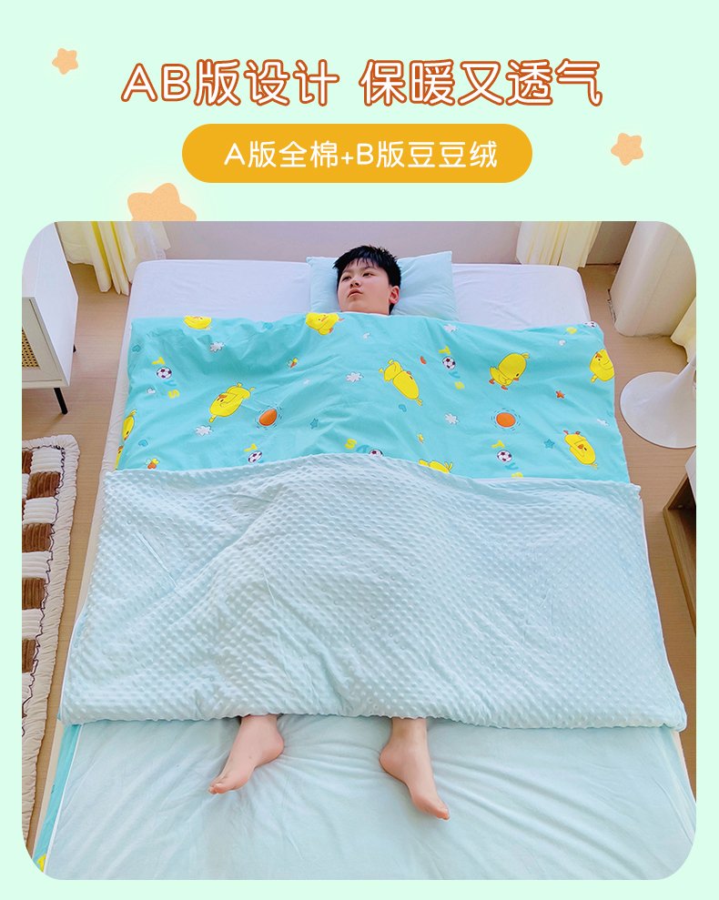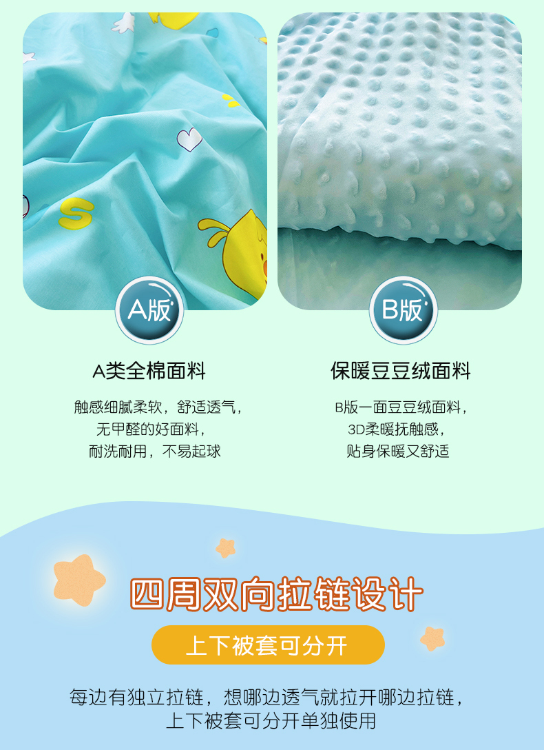 • 91家纺网 家纺一手货源 找家纺 萌朵家纺 2025新款豆豆绒全棉防踢被-结合牛奶绒绒防踢被 满天星,满天星