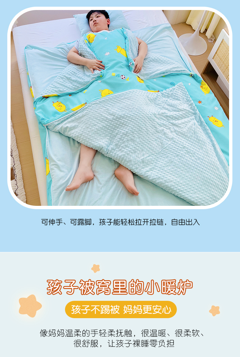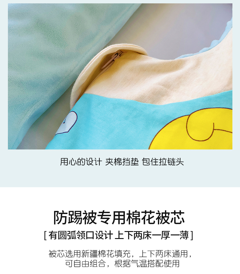 萌朵家纺 2025新款豆豆绒全棉防踢被-结合牛奶绒绒防踢被 小鸭踢球蓝
