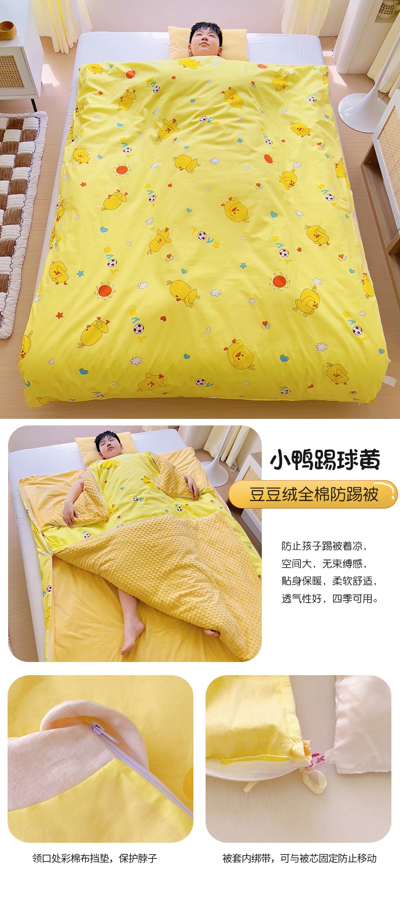 萌朵家纺 2025新款豆豆绒全棉防踢被-结合牛奶绒绒防踢被 大黄鸭,大黄鸭