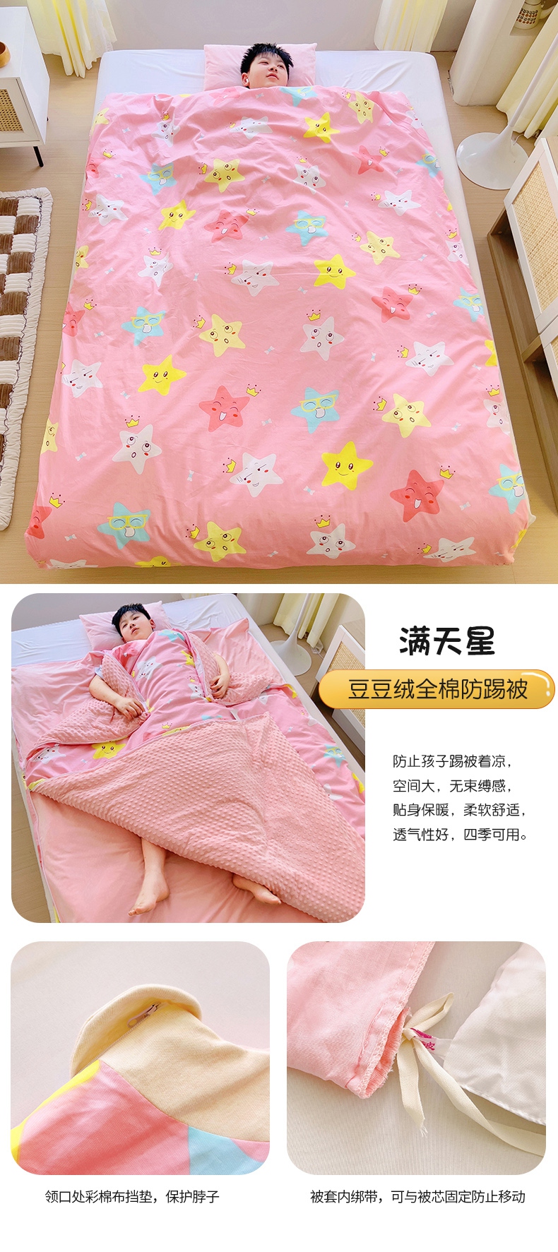 萌朵家纺 2025新款豆豆绒全棉防踢被-结合牛奶绒绒防踢被 满天星,满天星