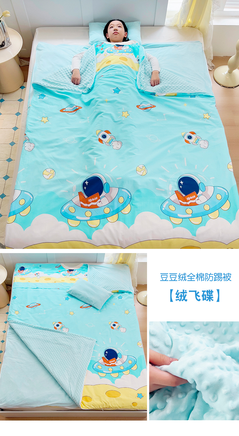 萌朵家纺 2025新款豆豆绒全棉防踢被-结合牛奶绒绒防踢被 飞碟,飞碟