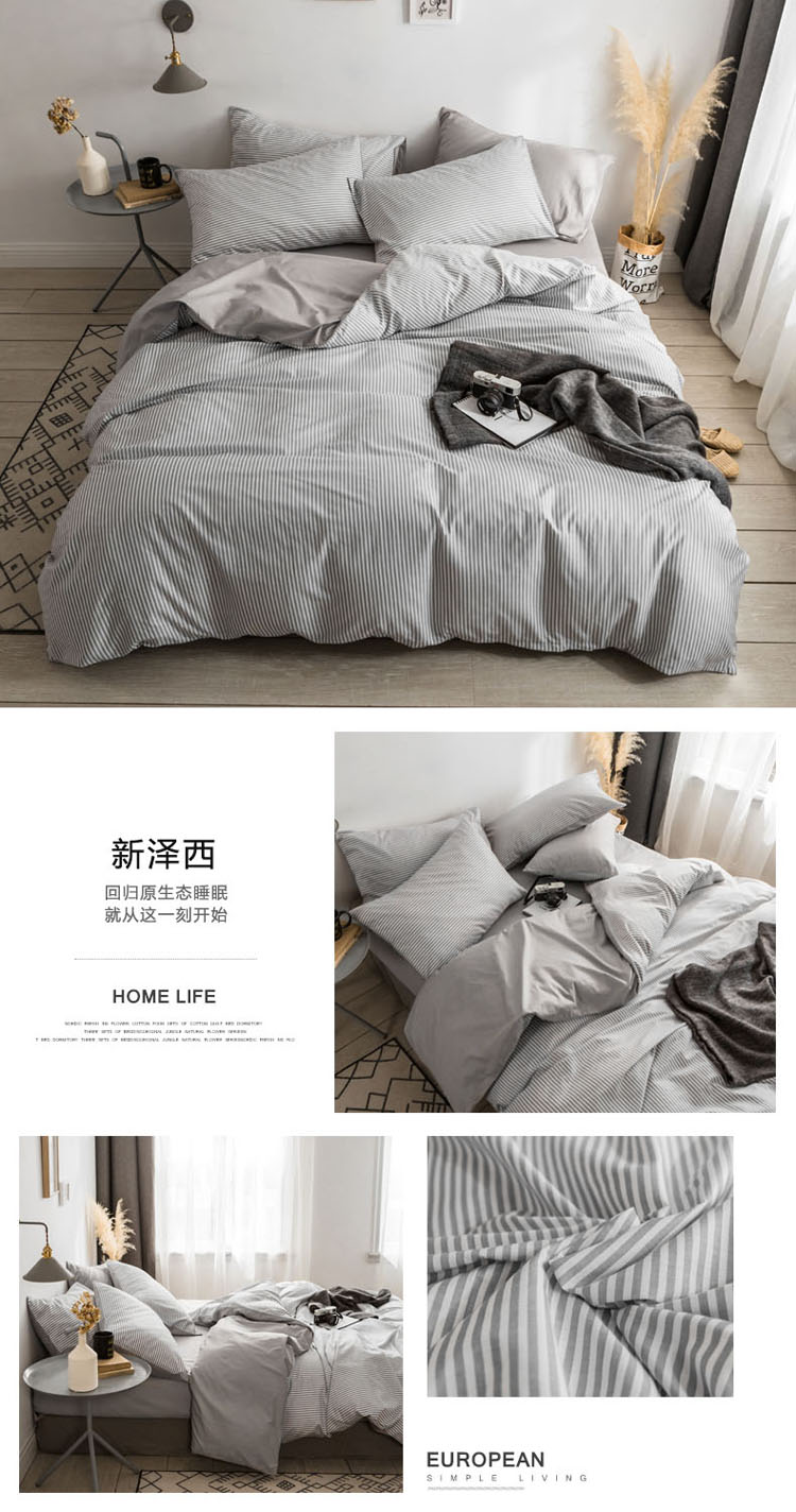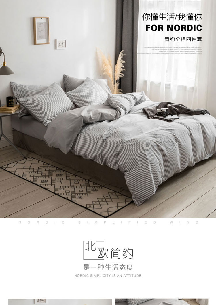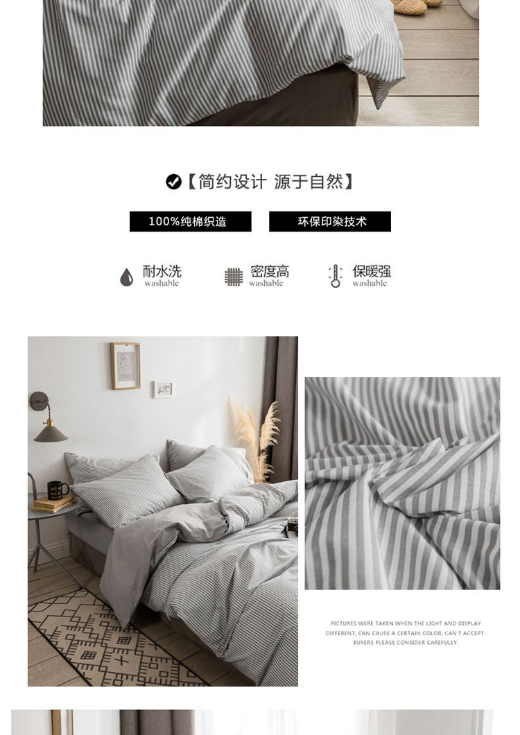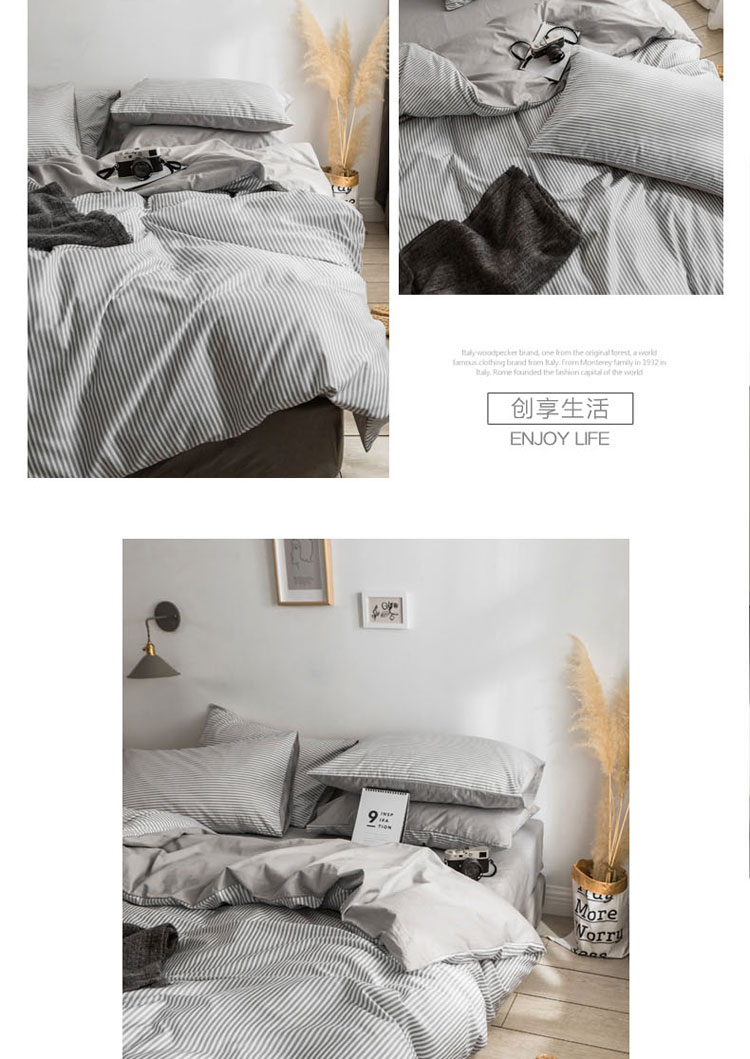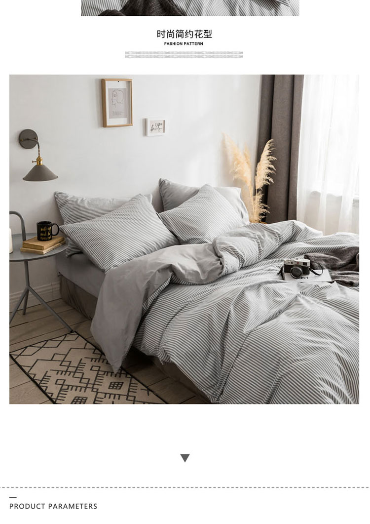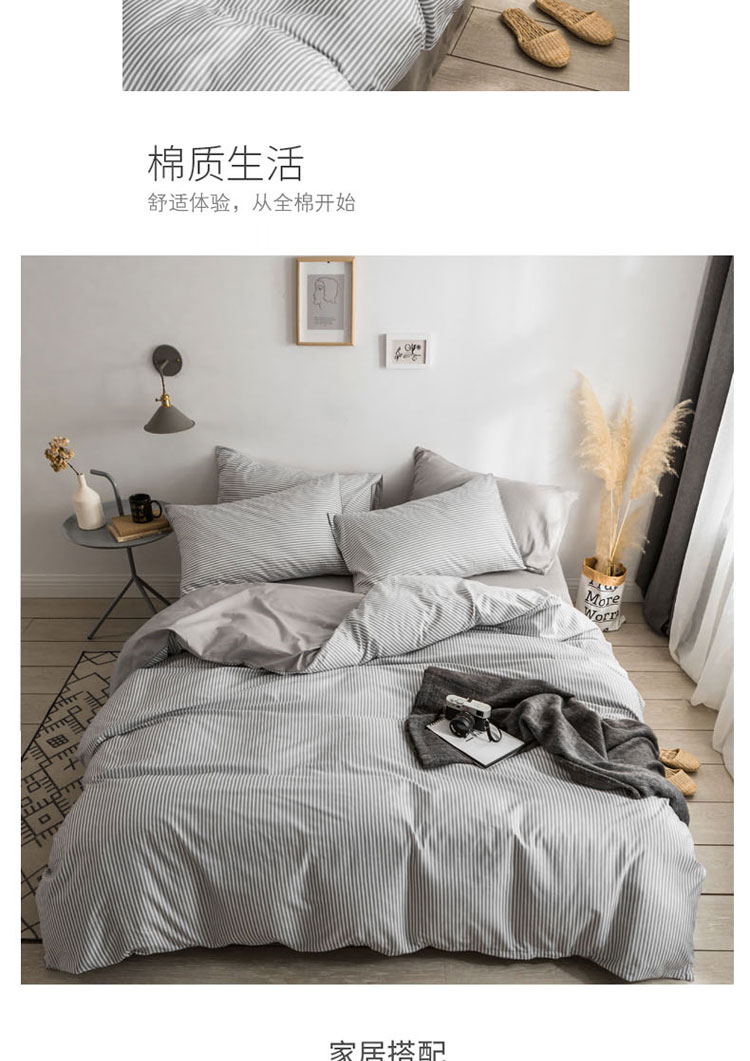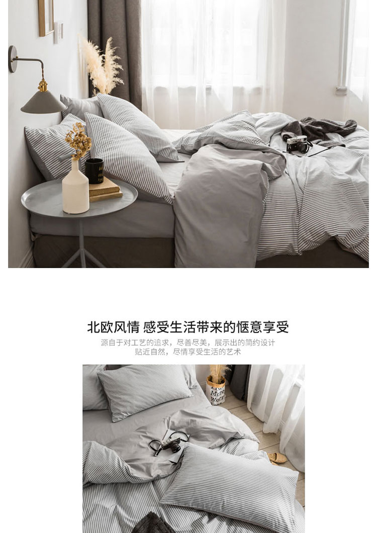 (总)梦家居 2024新款全棉13372简约小清新四件套,彩虹条纹,墨竹—黑色,墨竹—米色