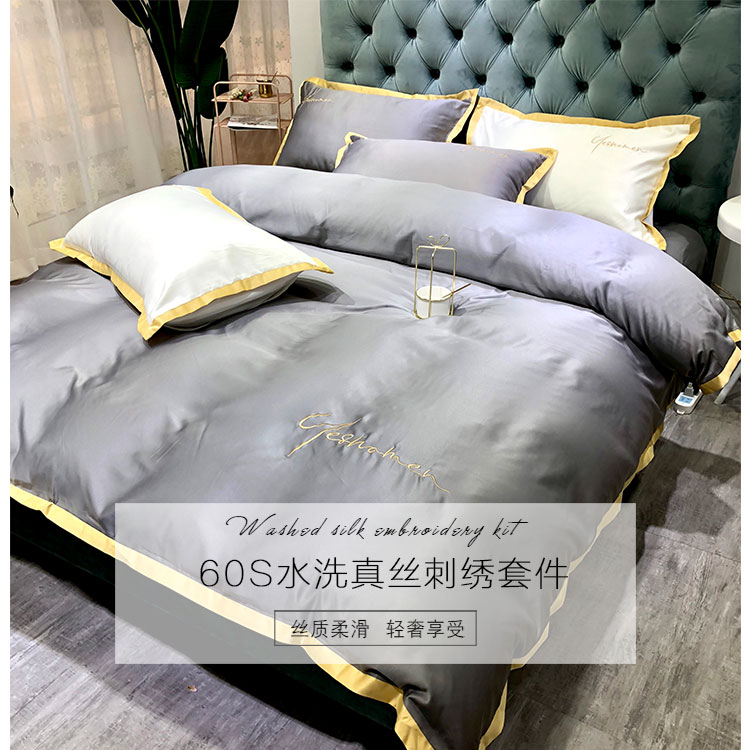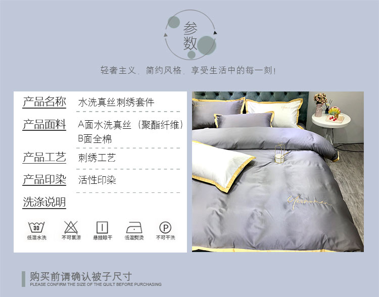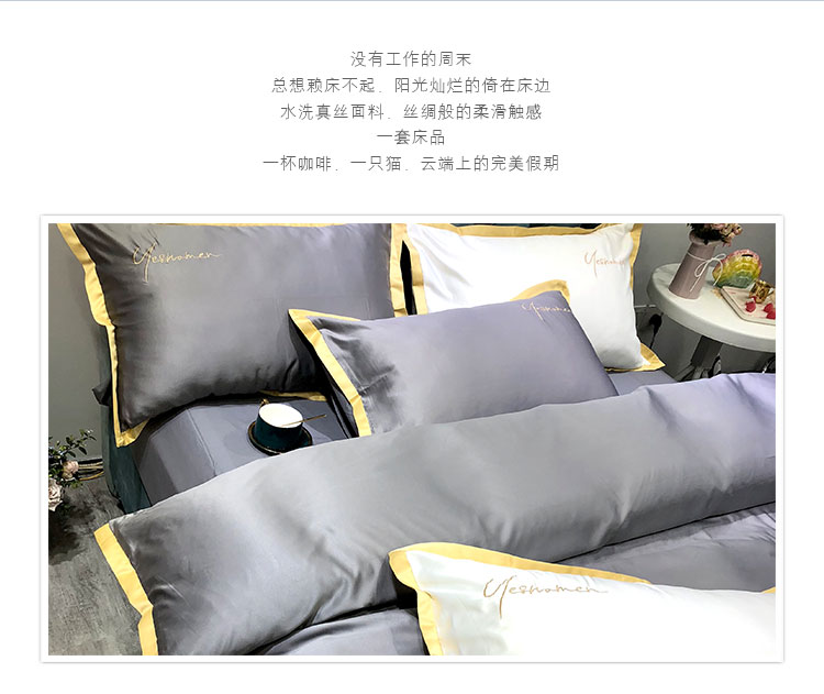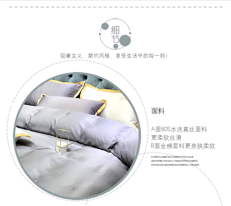 商品名称:安妮 2020新款水洗真丝凯茜四件套(实拍图) 光泽灰