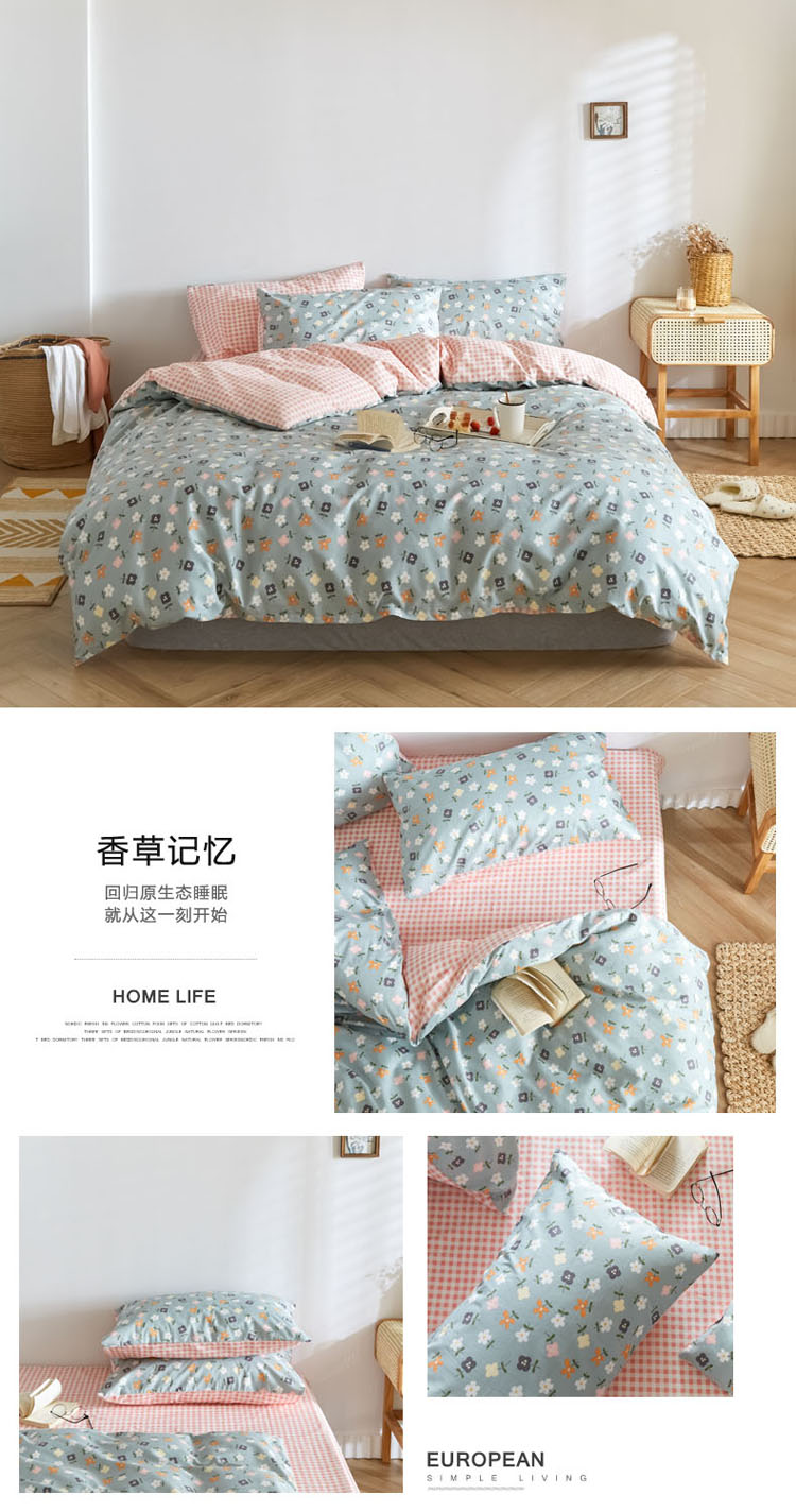 (总)梦家居 2022新款小清新系列全棉四件套,茶艺,复古玫瑰,黑白波纹,陌上花开,夏花,仙草,小熊猫