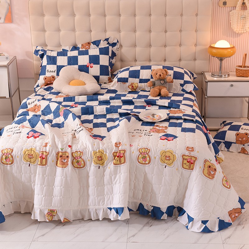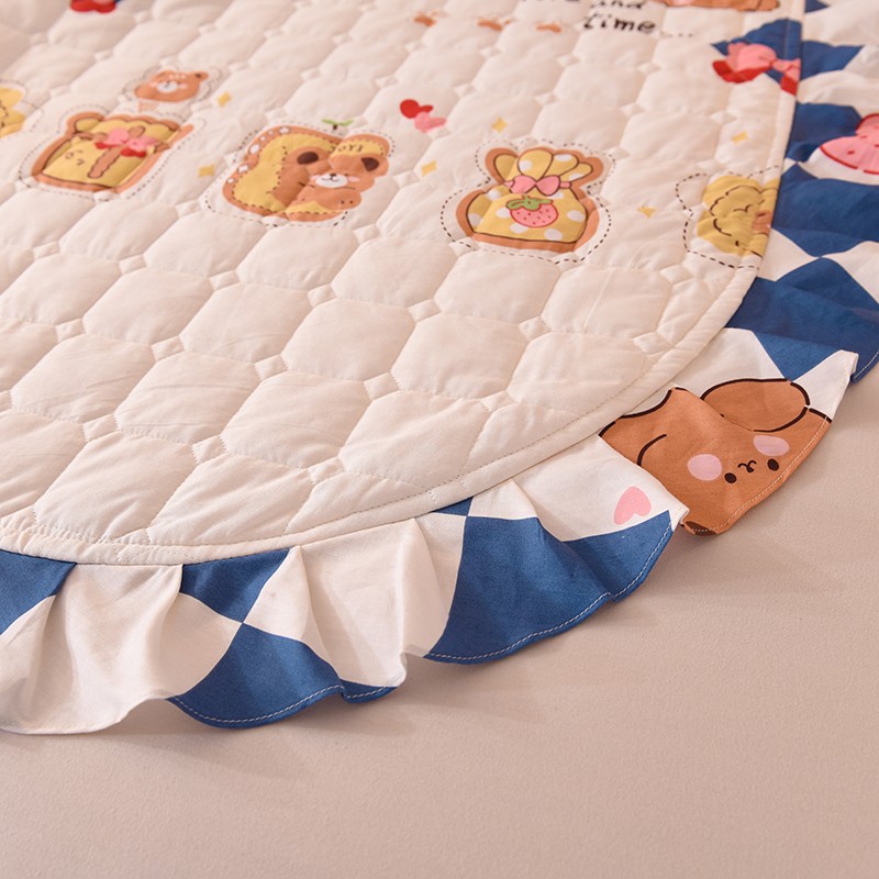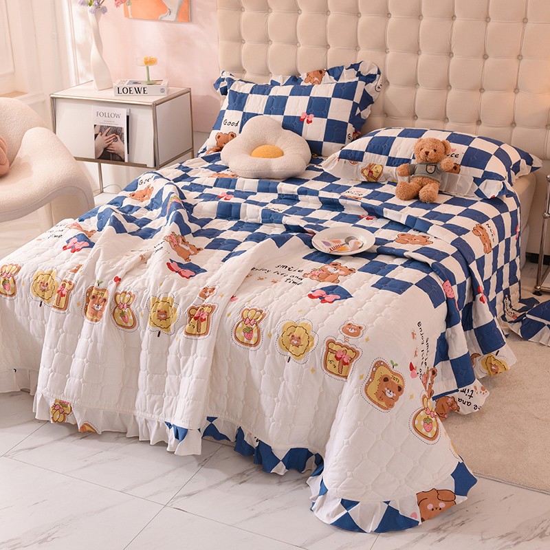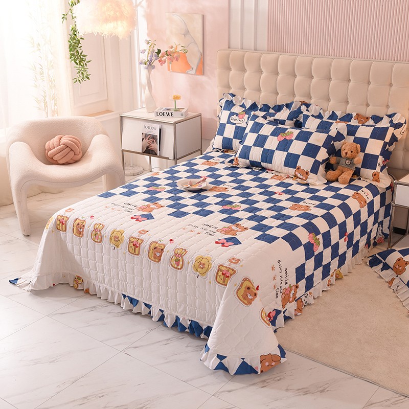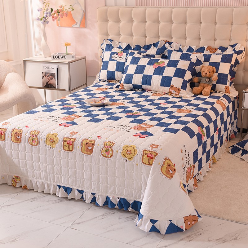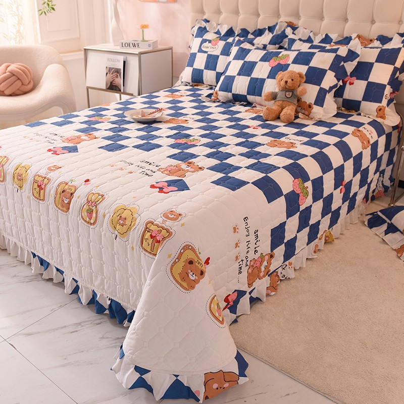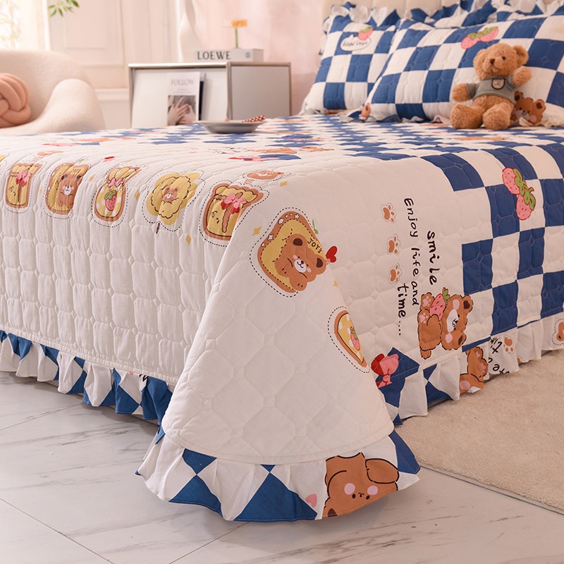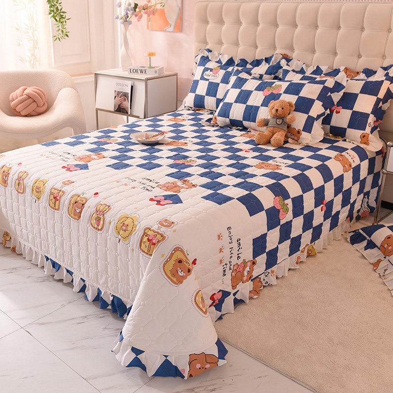 甜之梦家纺 2025新款全棉夹棉防滑抗菌花边款床盖 派对熊
