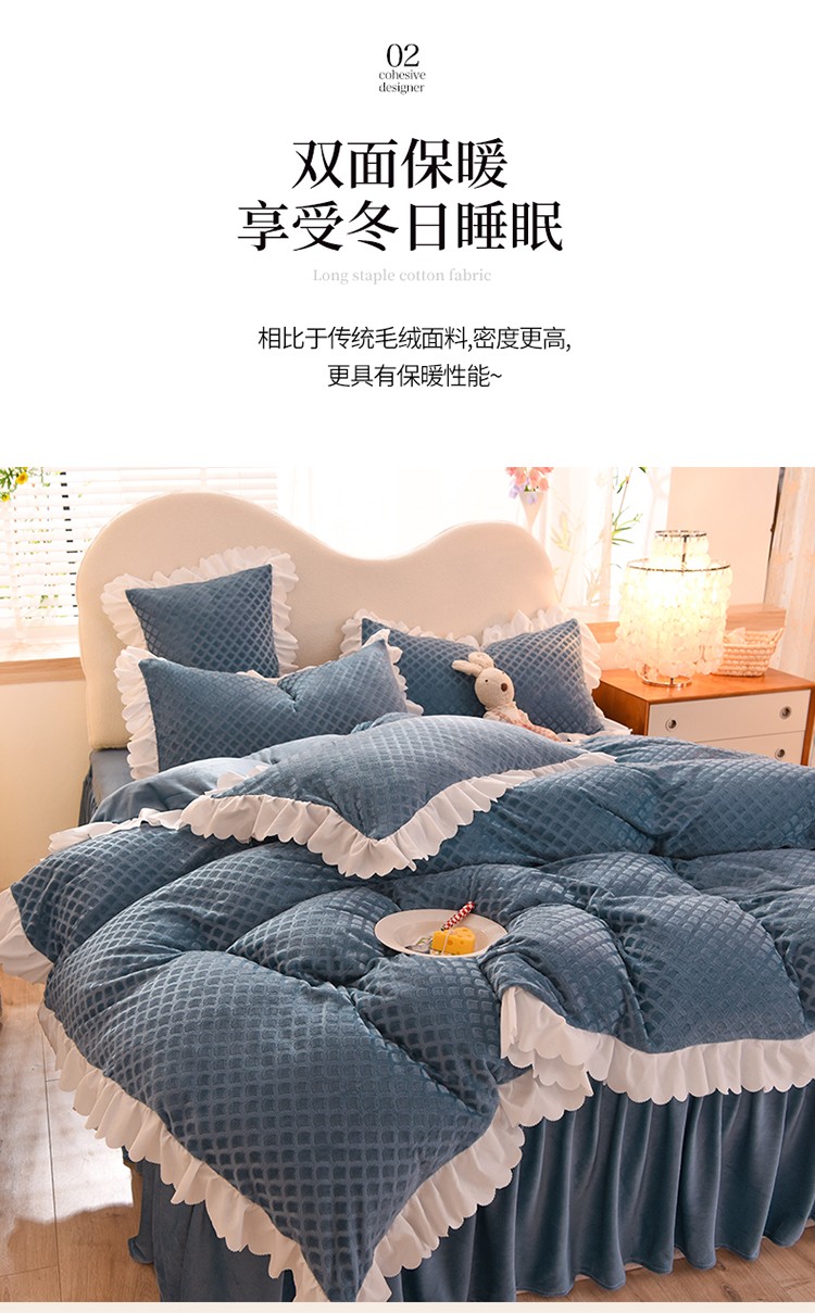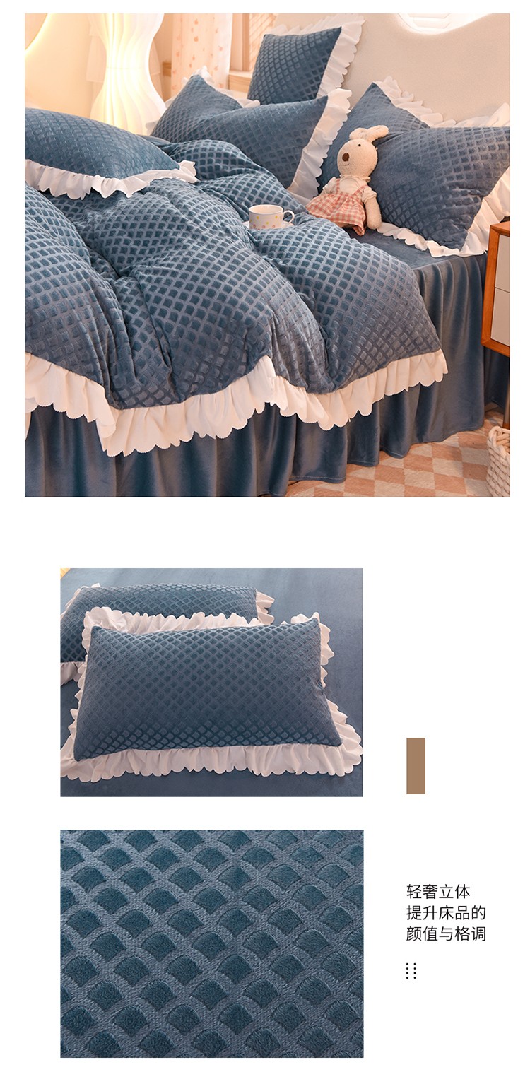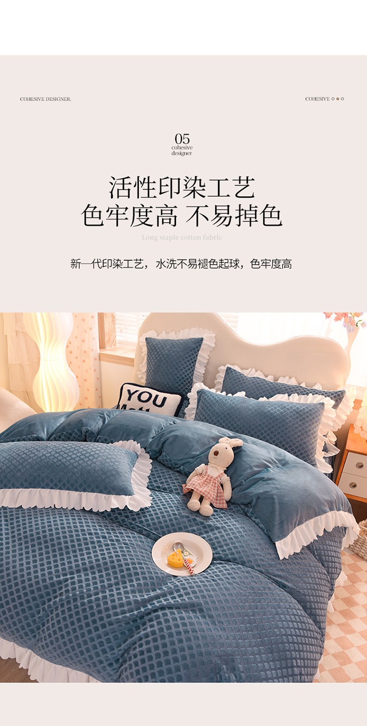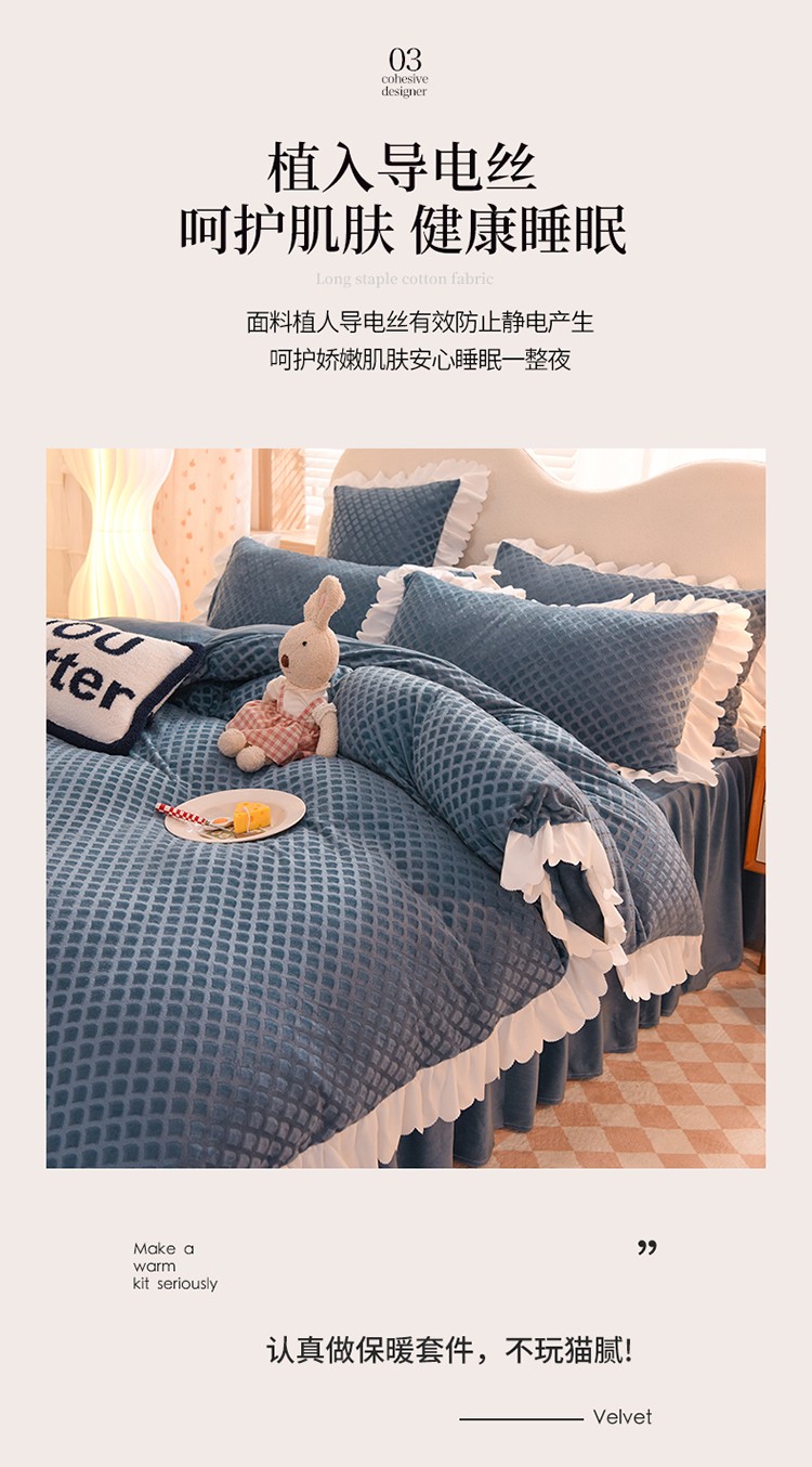 当前位置: 91家纺网 > 商品网购 > 床品套件 > 四件套 > 牛奶绒四件套 > 梦之岛 2022新款韩版牛奶绒水晶绒剪花四件套 时尚格-高贵蓝
