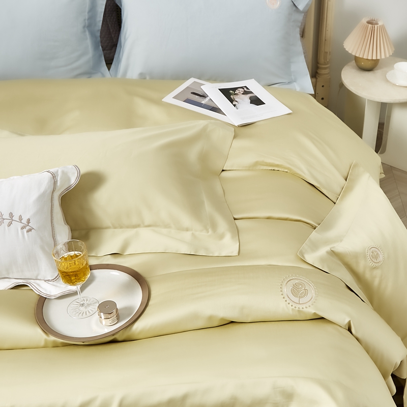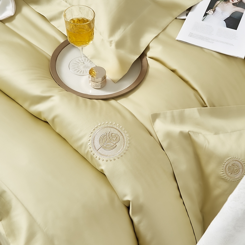 榻尚家居 2023新款TS简约系列80长绒棉贡缎四件套 芥末色