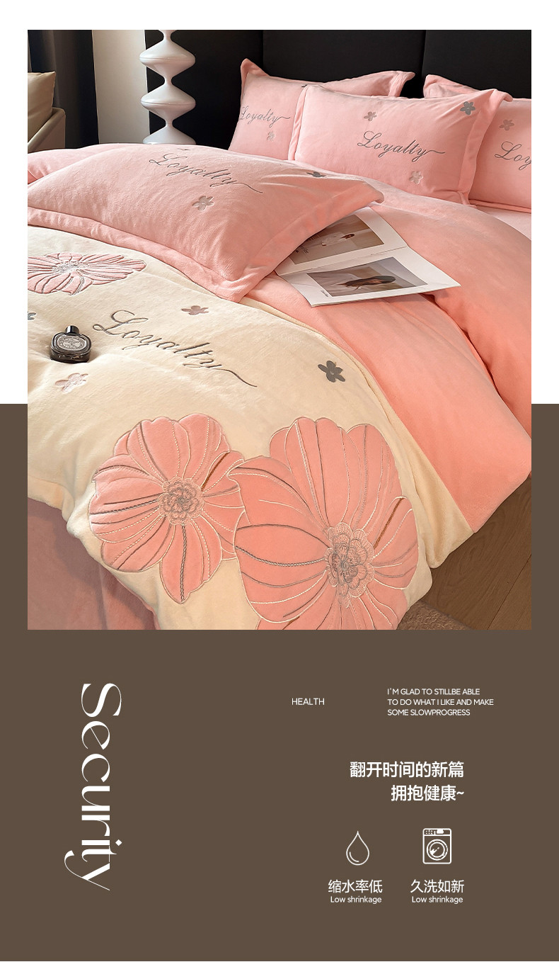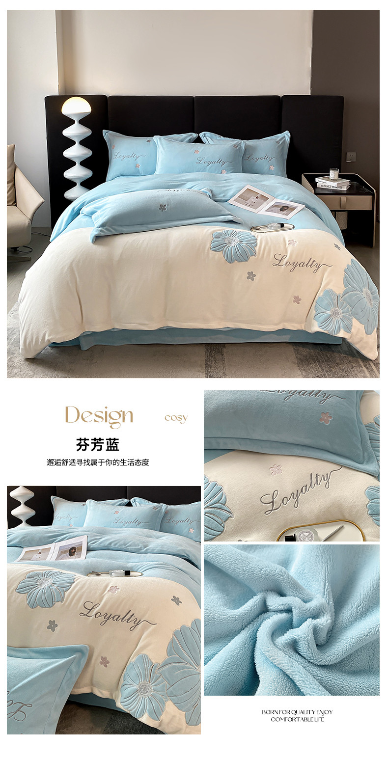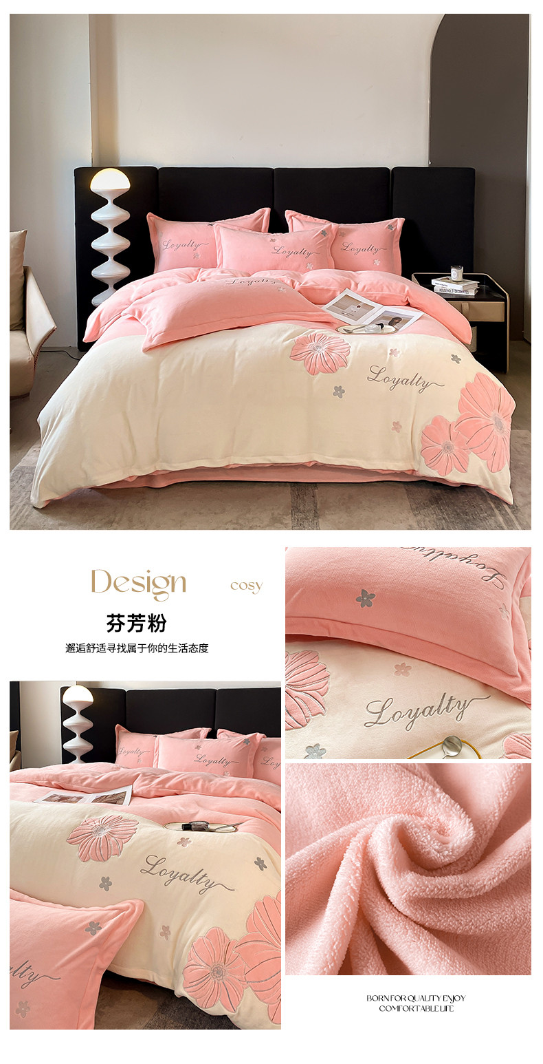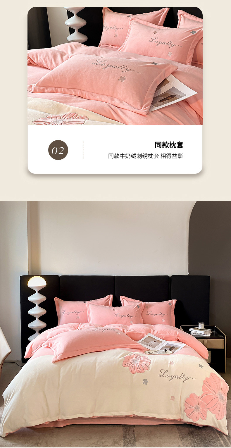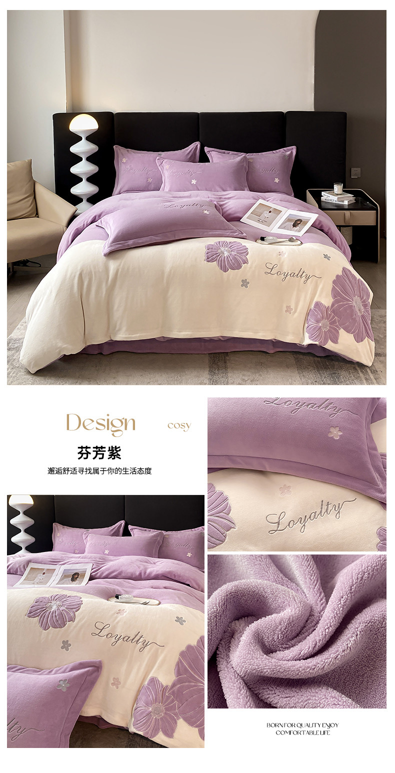 当前位置: 91家纺网 > 商品网购 > 床品套件 > 四件套 > 牛奶绒四件套 > (总)你好美丽 2025新款200克牛奶绒拼接刺绣四件套芬芳系列