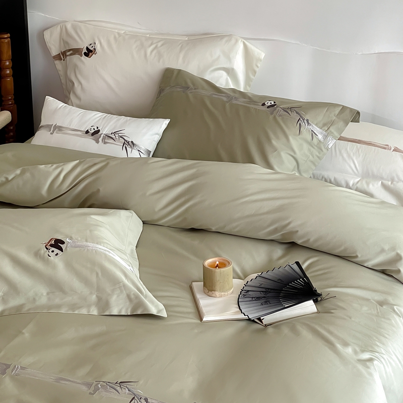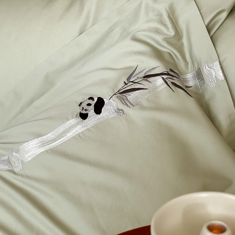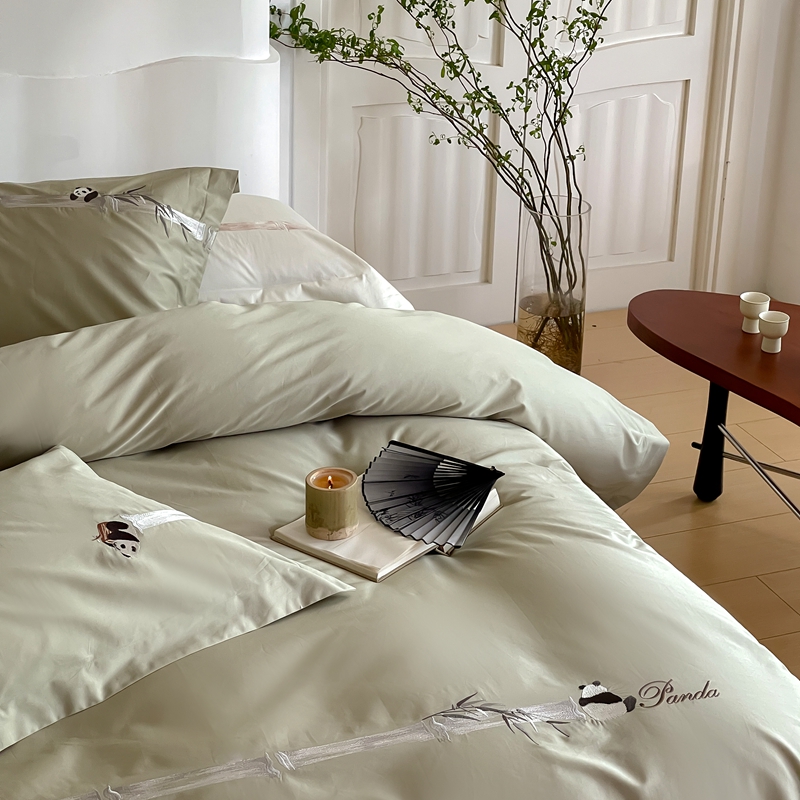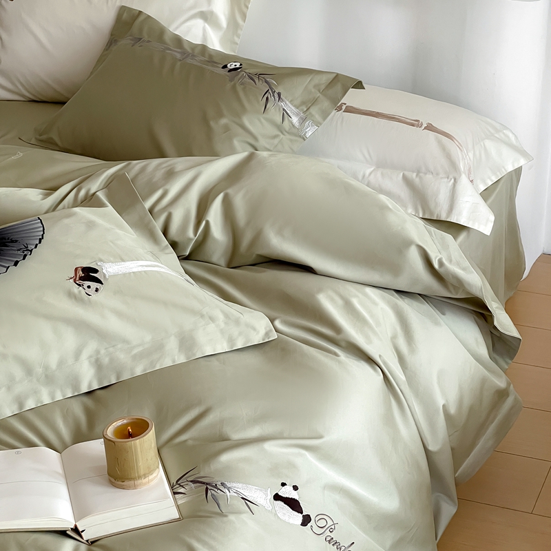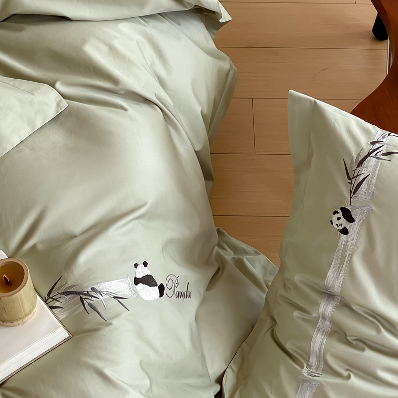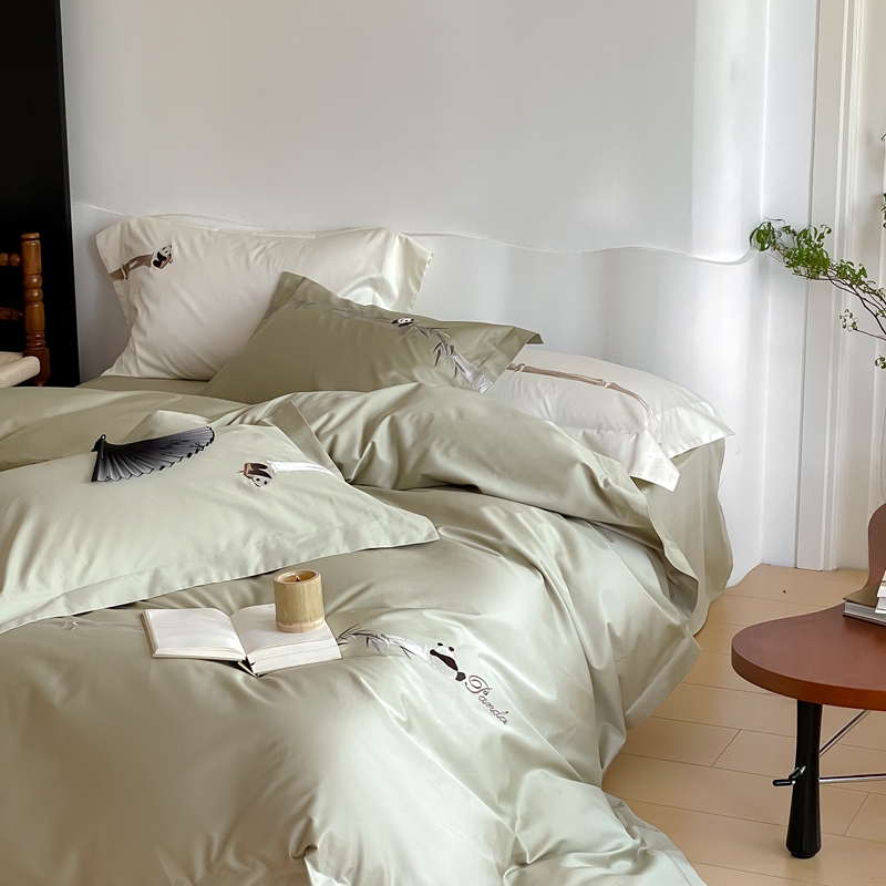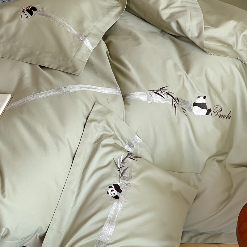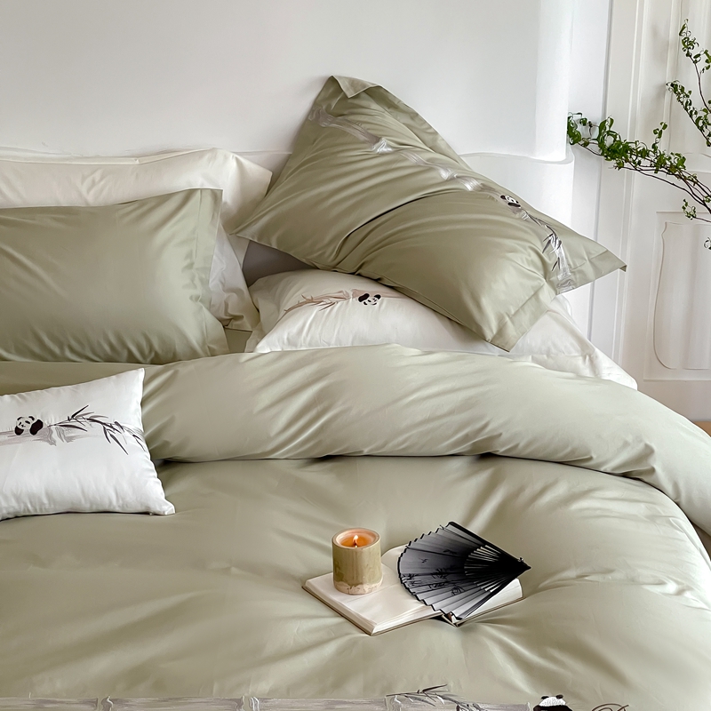 沐白家居 2023长绒棉绣花四件套-奶熊起司 竹青绿
