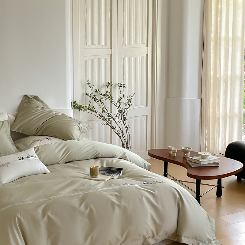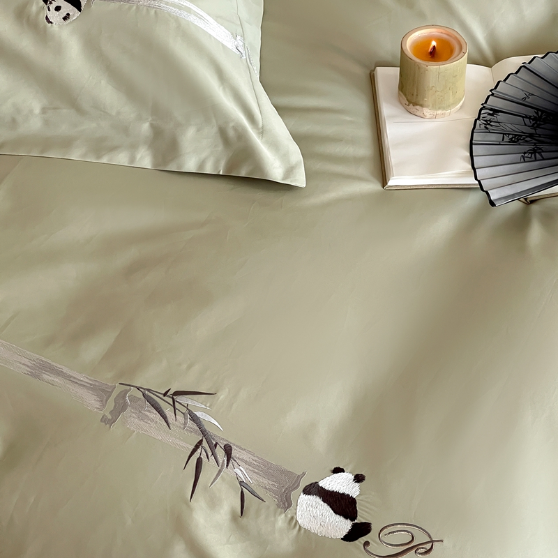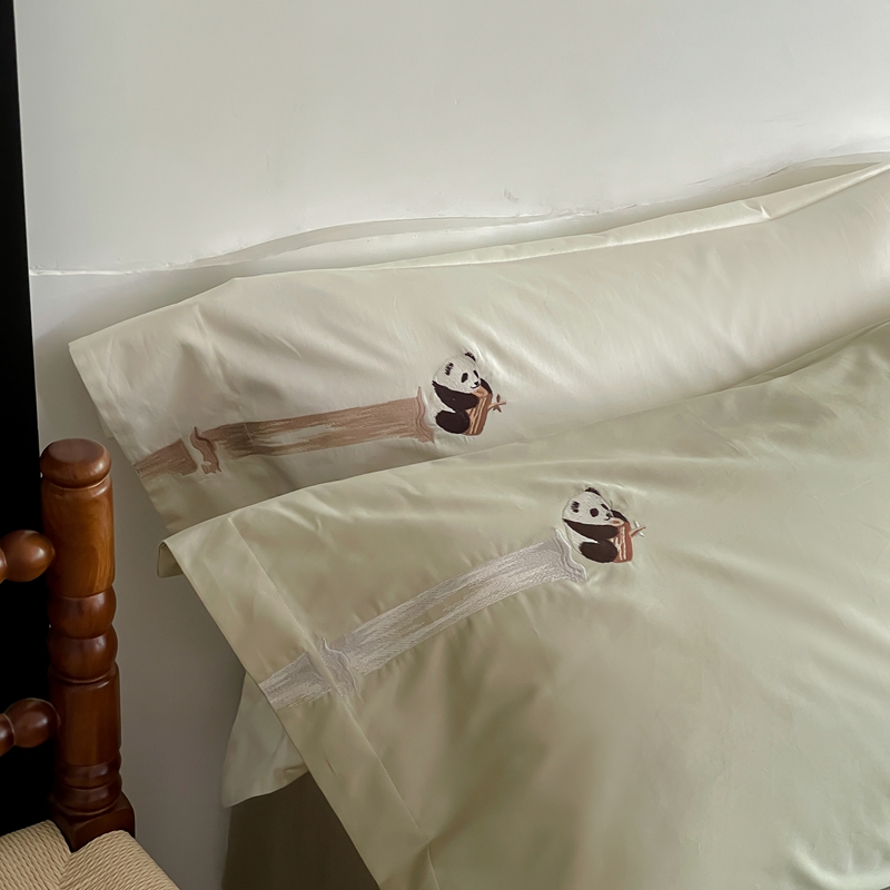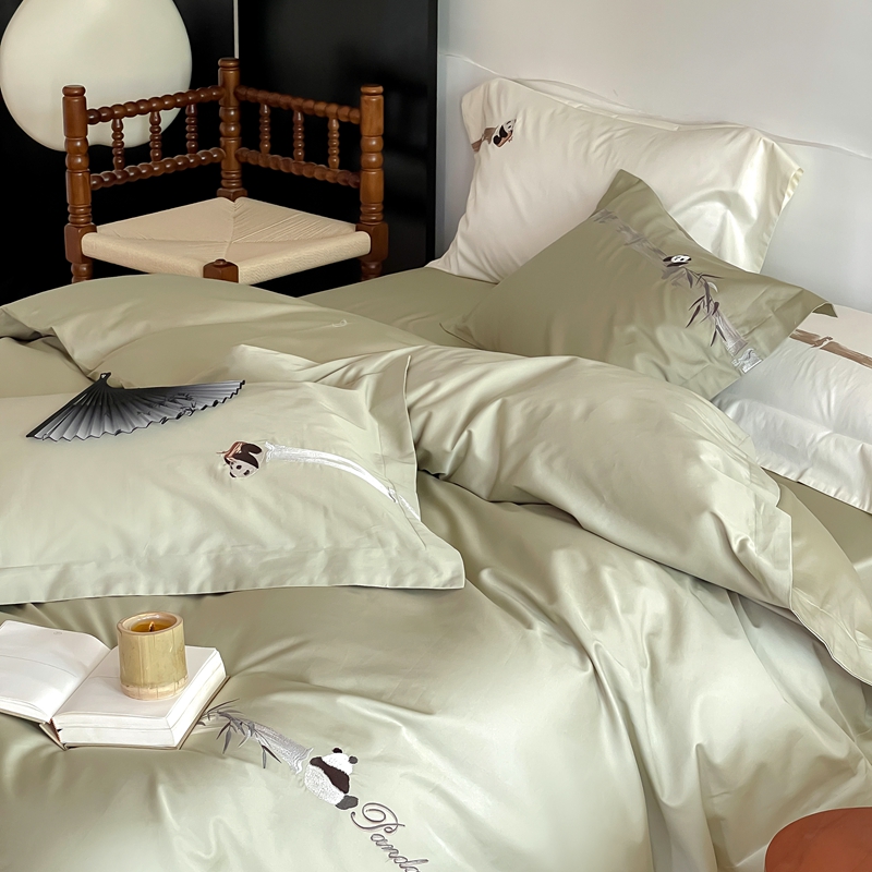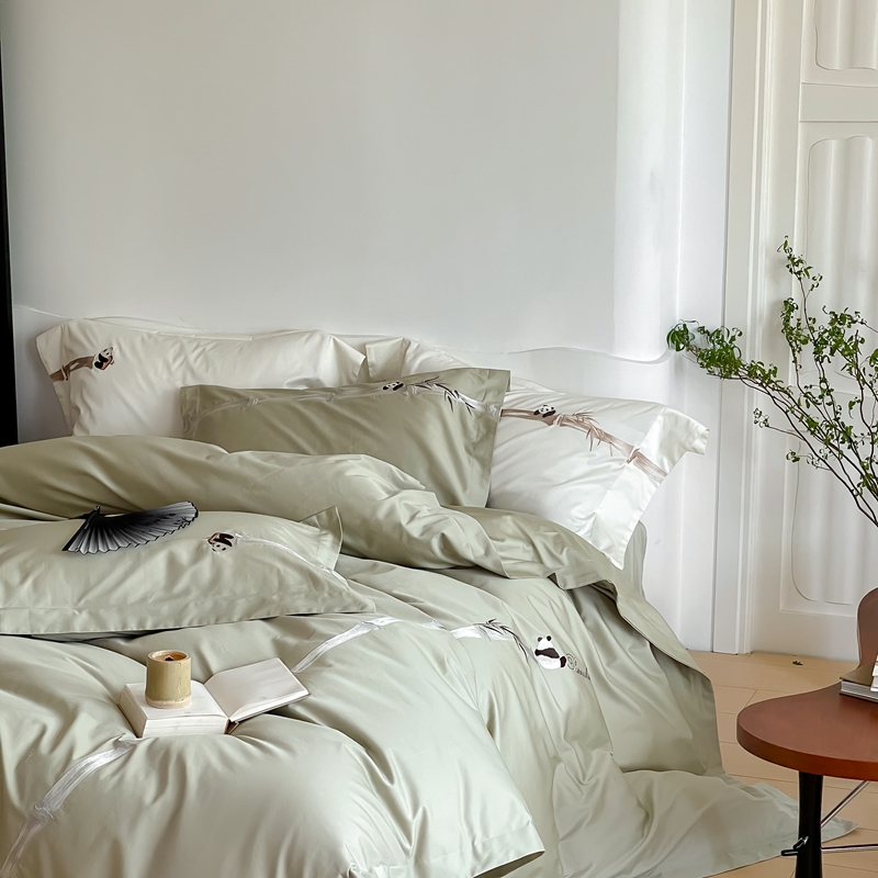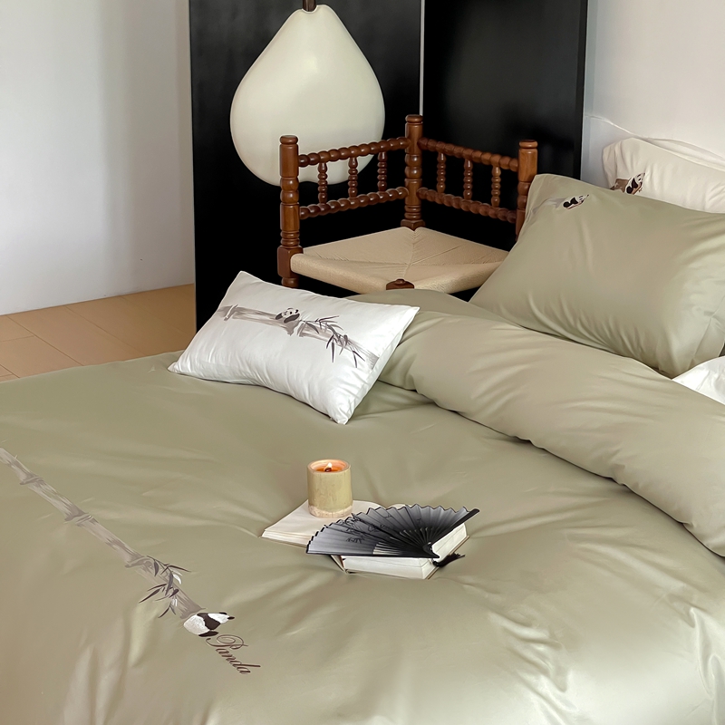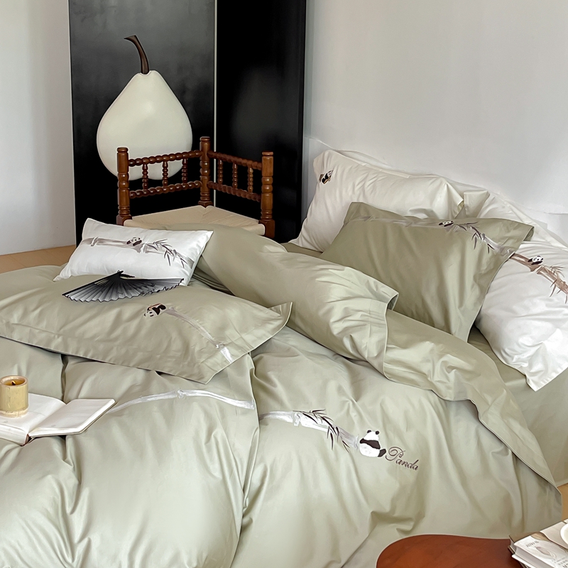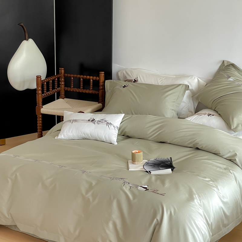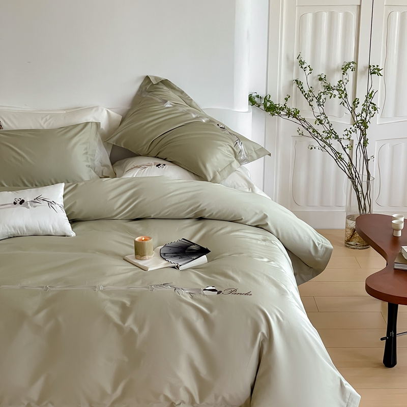 沐白家居 2023长绒棉绣花四件套-奶熊起司 竹青绿