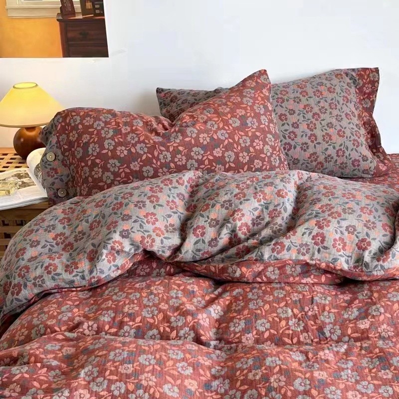 商品名称:双层纱家居 2023新款双层纱四件套 炫彩红灰