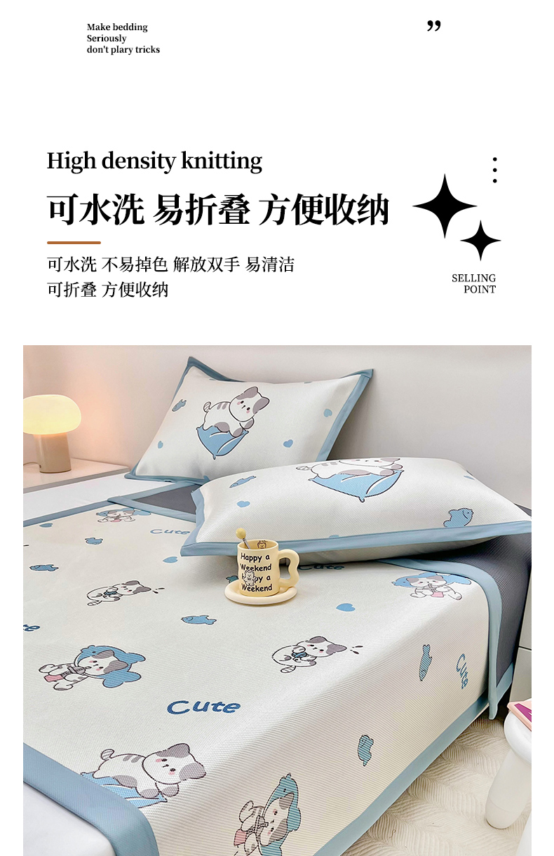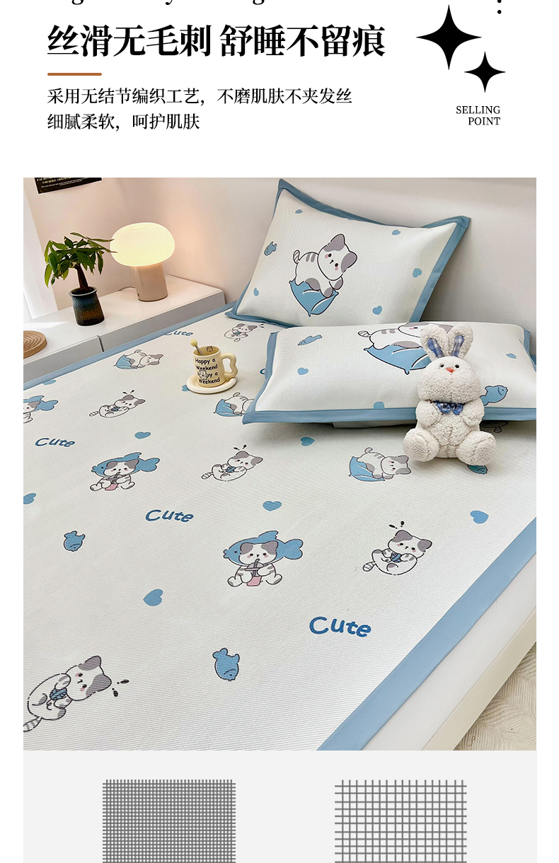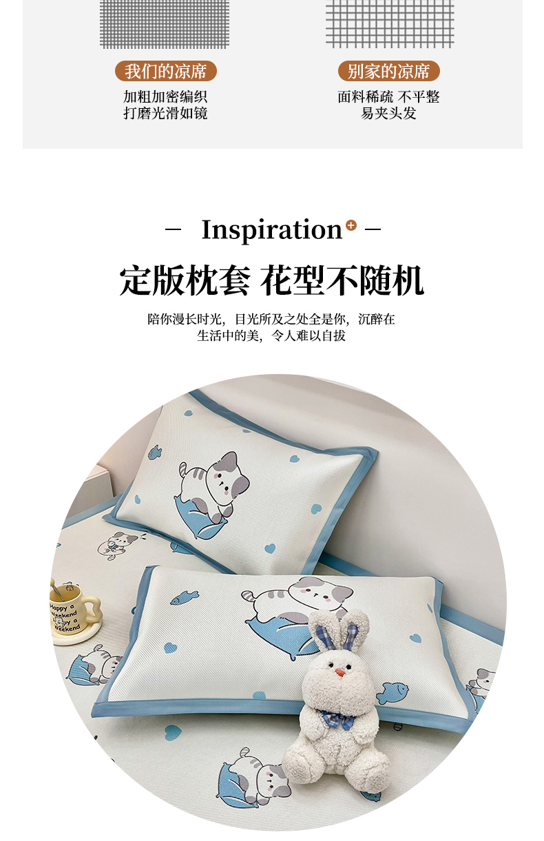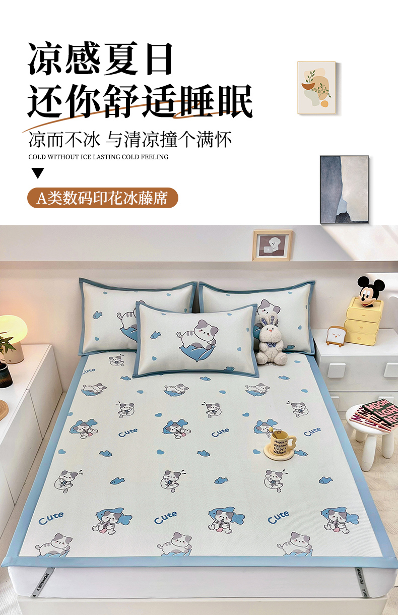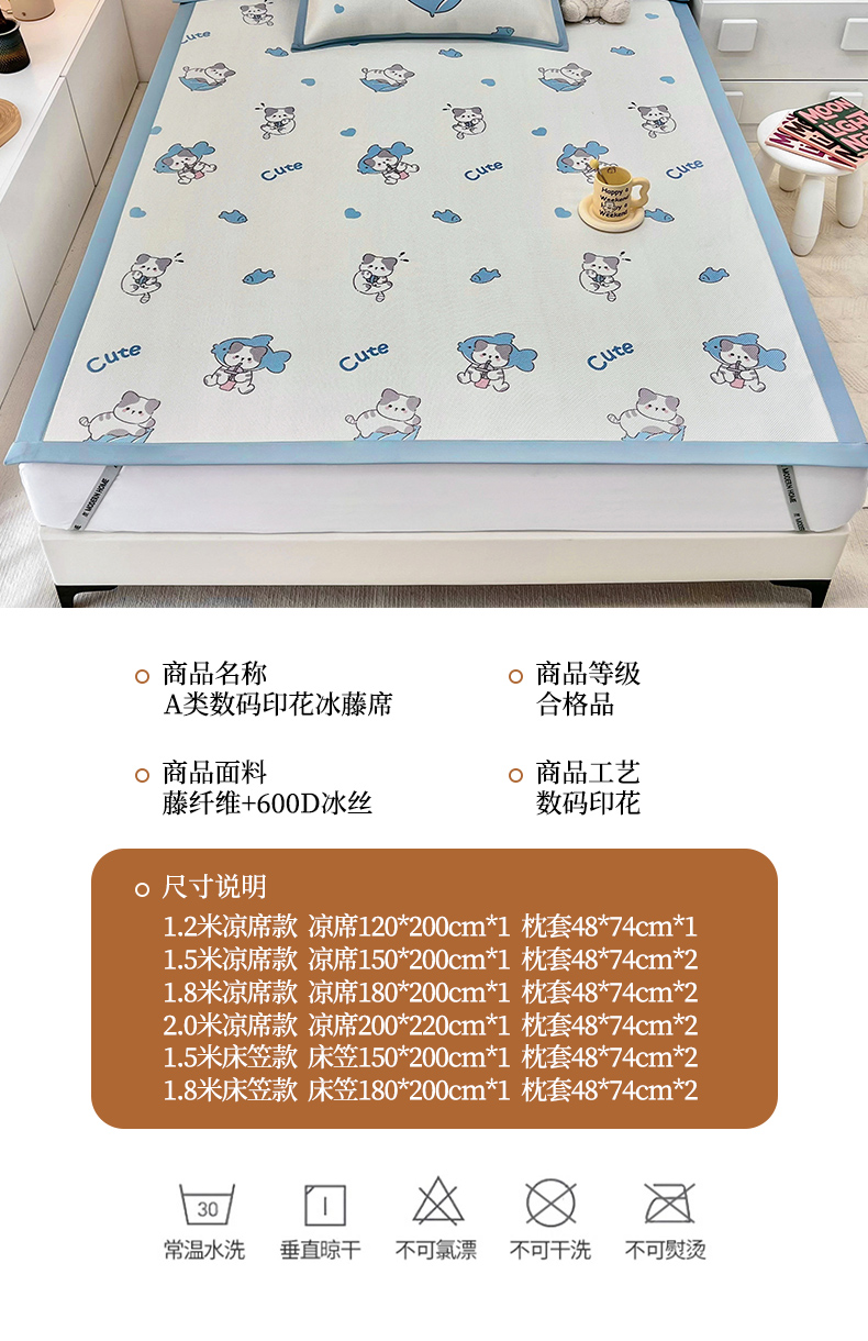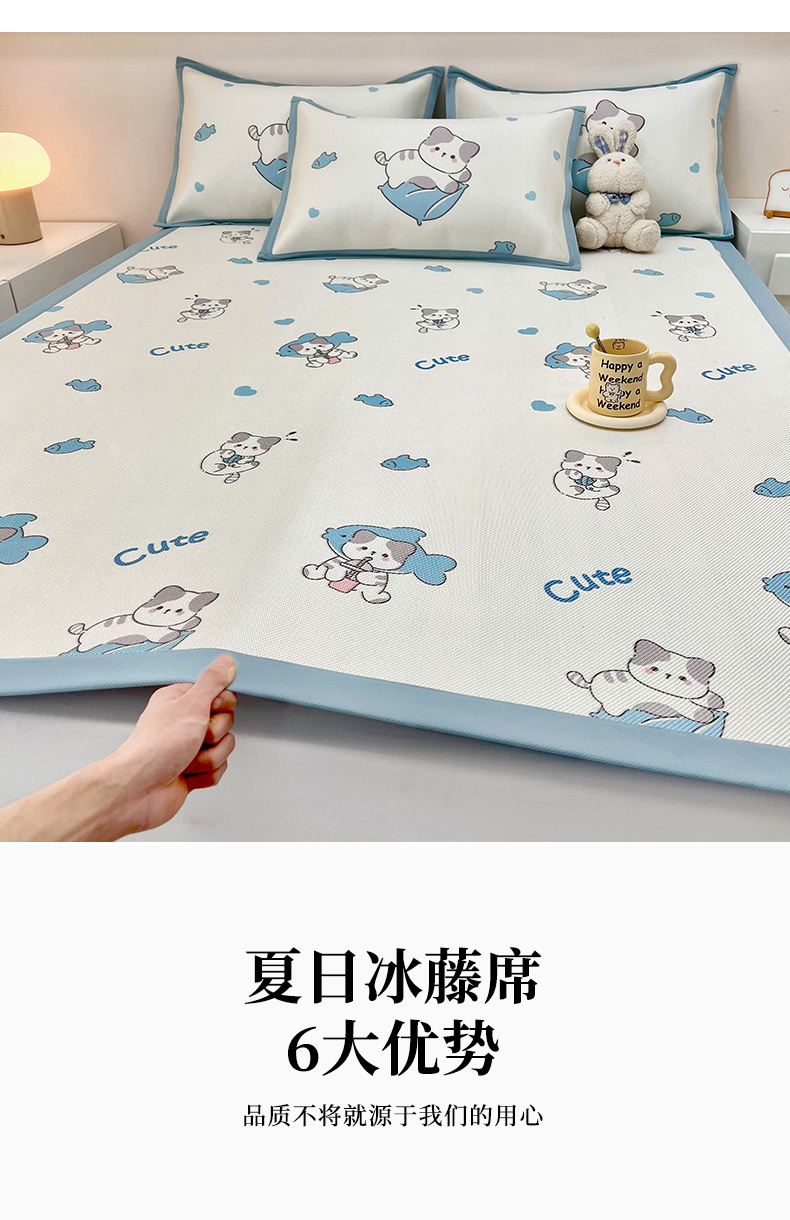 当前位置: 91家纺网 > 商品网购 > 床上用品 > 凉席 > 藤席 > 全季家居 2024新款5A抗菌小清新数码印花冰藤席 贪吃小猫(床席款)