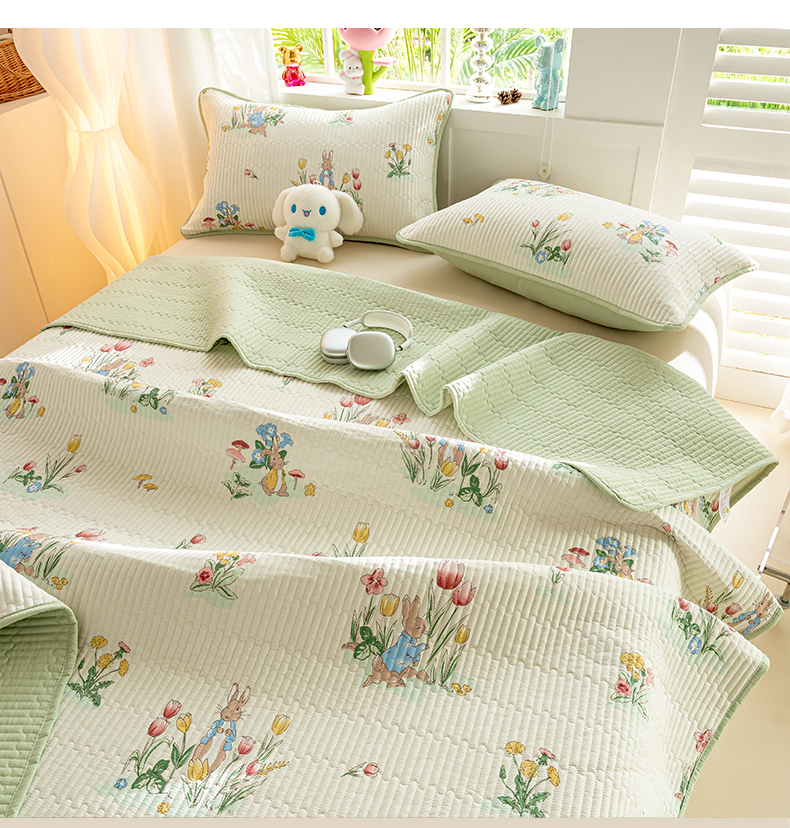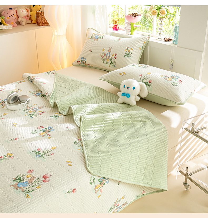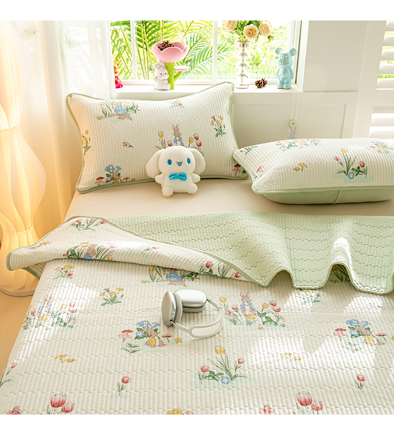 • 91家纺网 家纺一手货源 找家纺 X猫先生床笠 2025新款全棉床盖床单小清新夹棉床盖炕盖套件跑量款(暖光场景图) 花丛兔