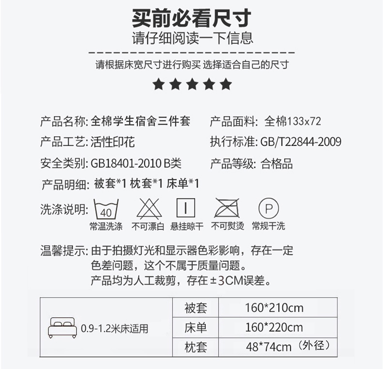 0.9-1.2m床单款三件套 | ¥75.00 |