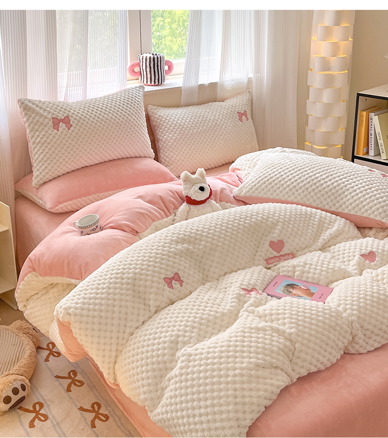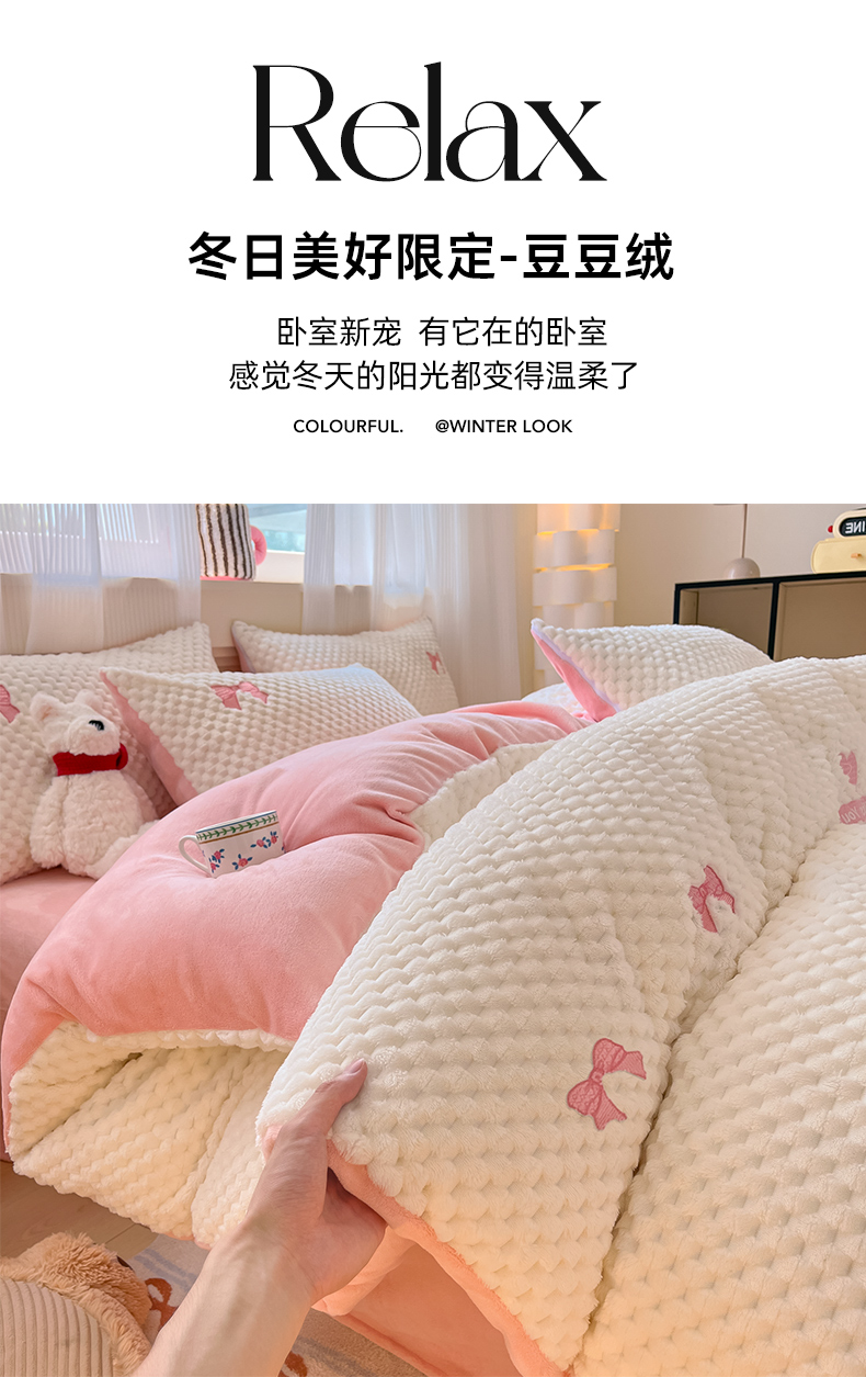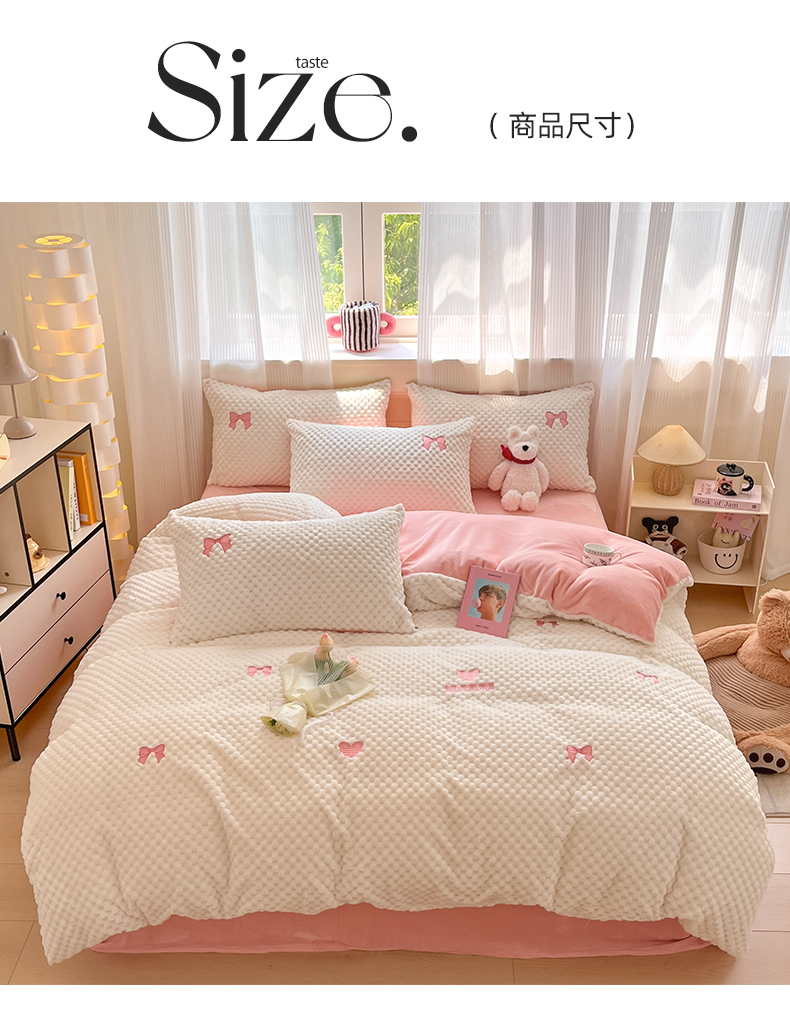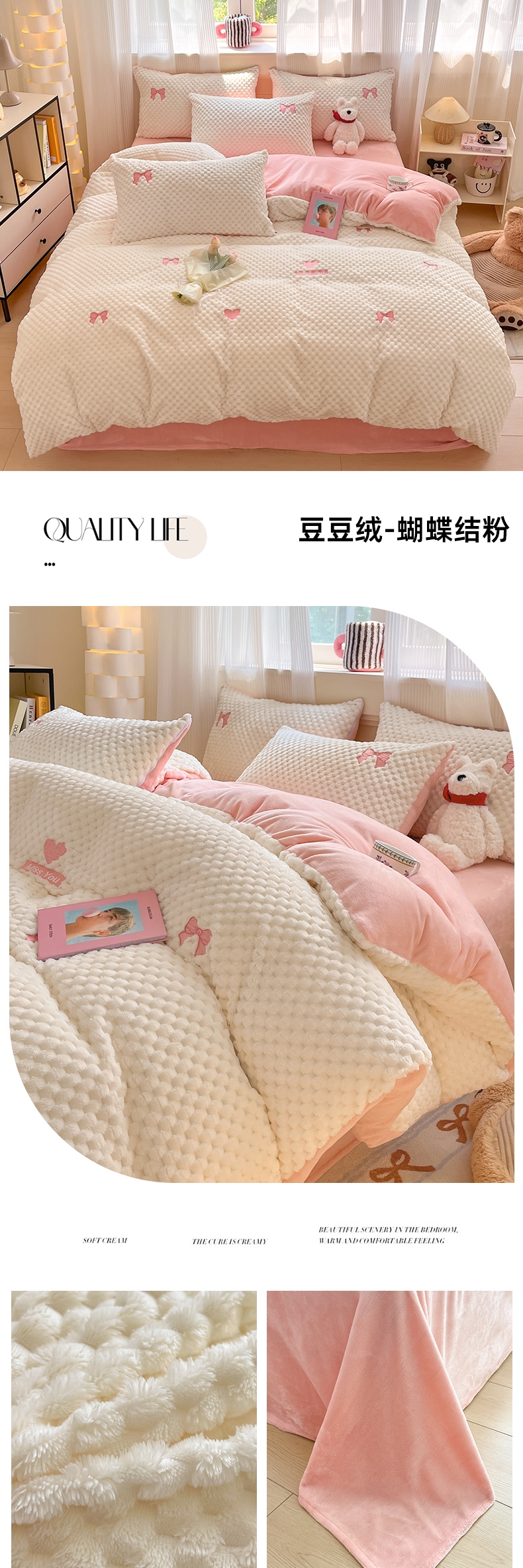 商品名称:铭宣家居 2024新款A类豆豆绒刺绣款四件套 豆豆绒-蝴蝶结粉