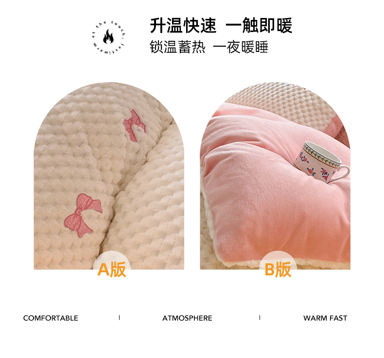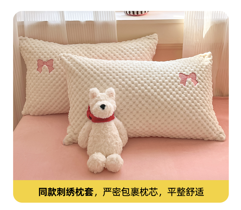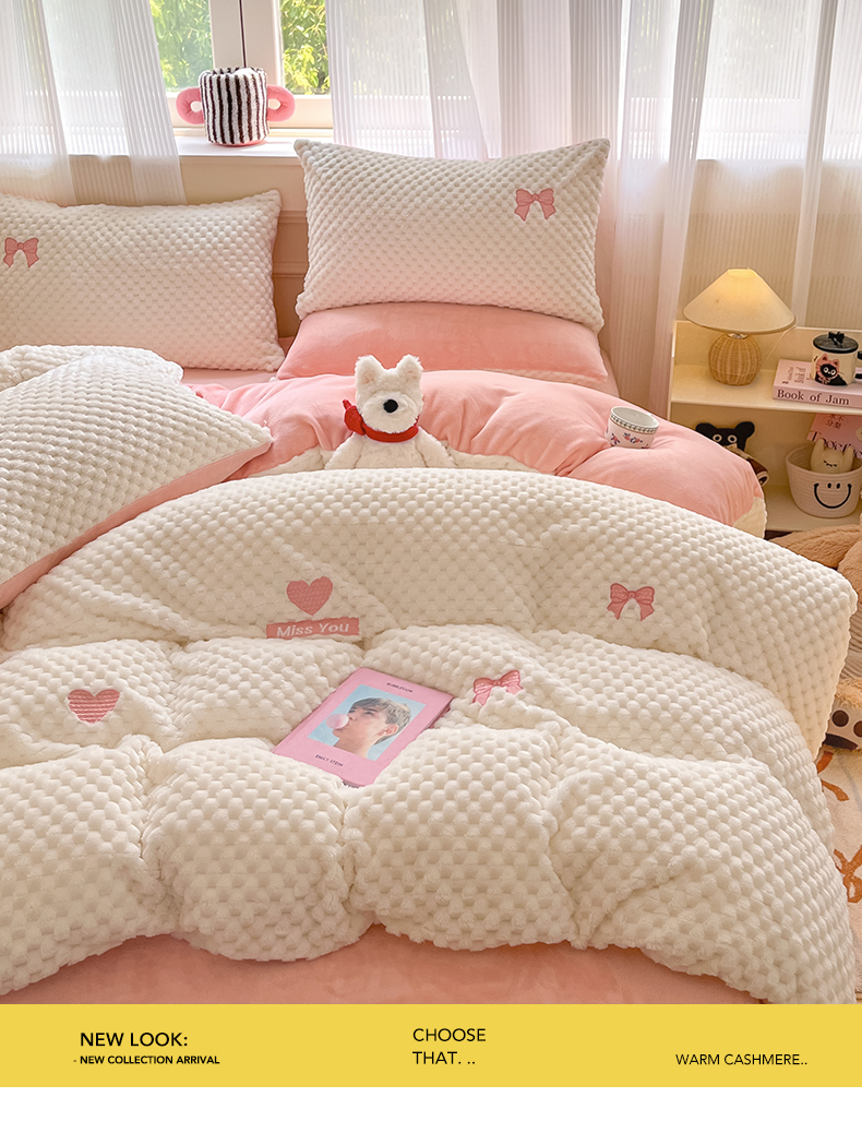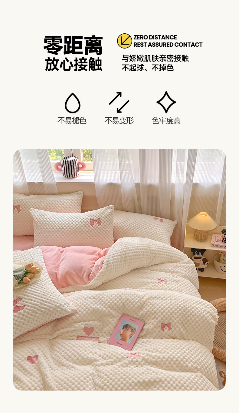商品名称:铭宣家居 2024新款A类豆豆绒刺绣款四件套 豆豆绒-蝴蝶结粉
