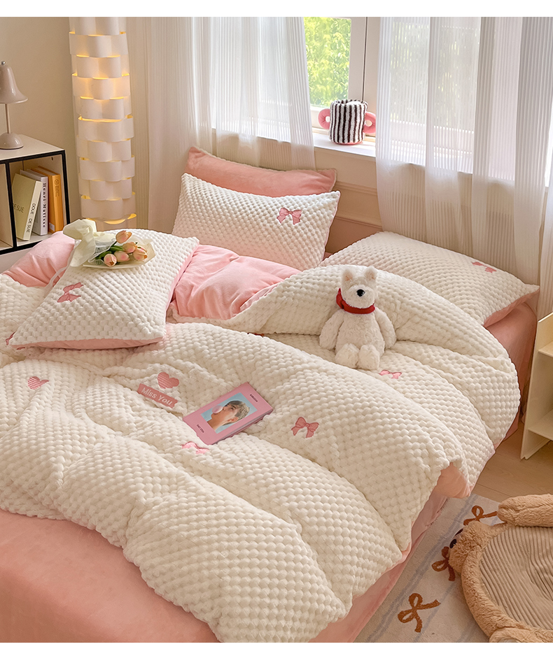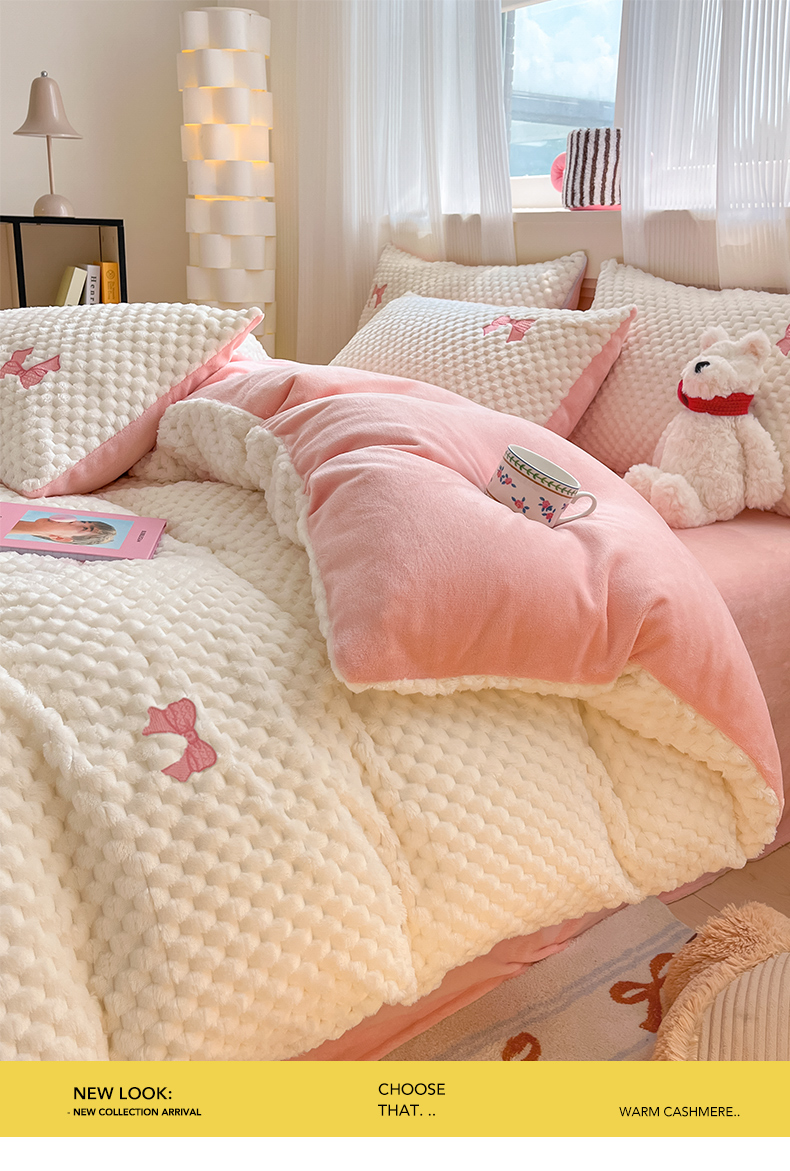 铭宣家居 2024新款A类豆豆绒刺绣款四件套 豆豆绒-蝴蝶结粉