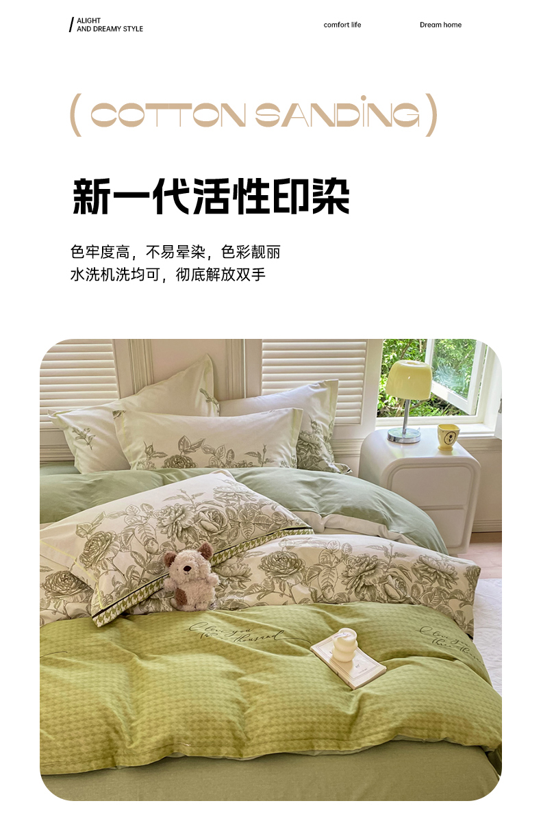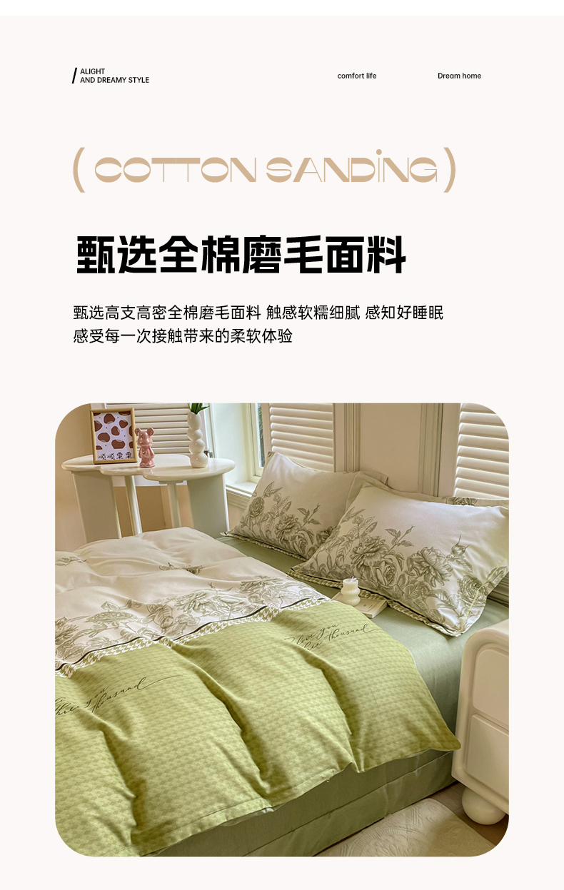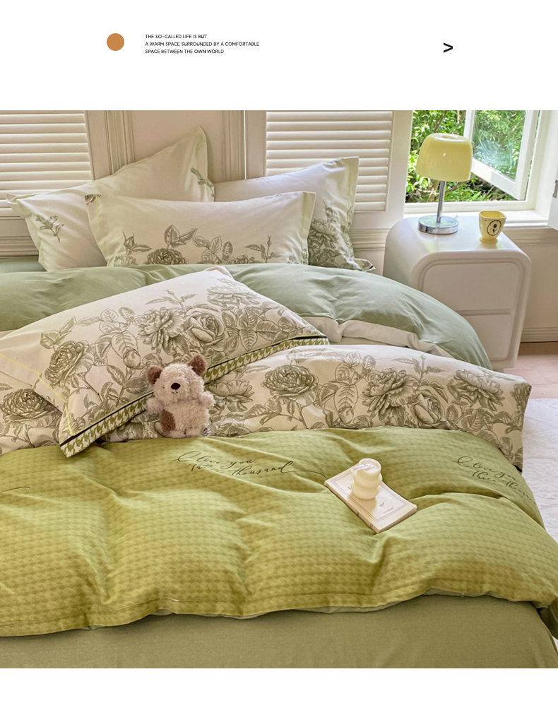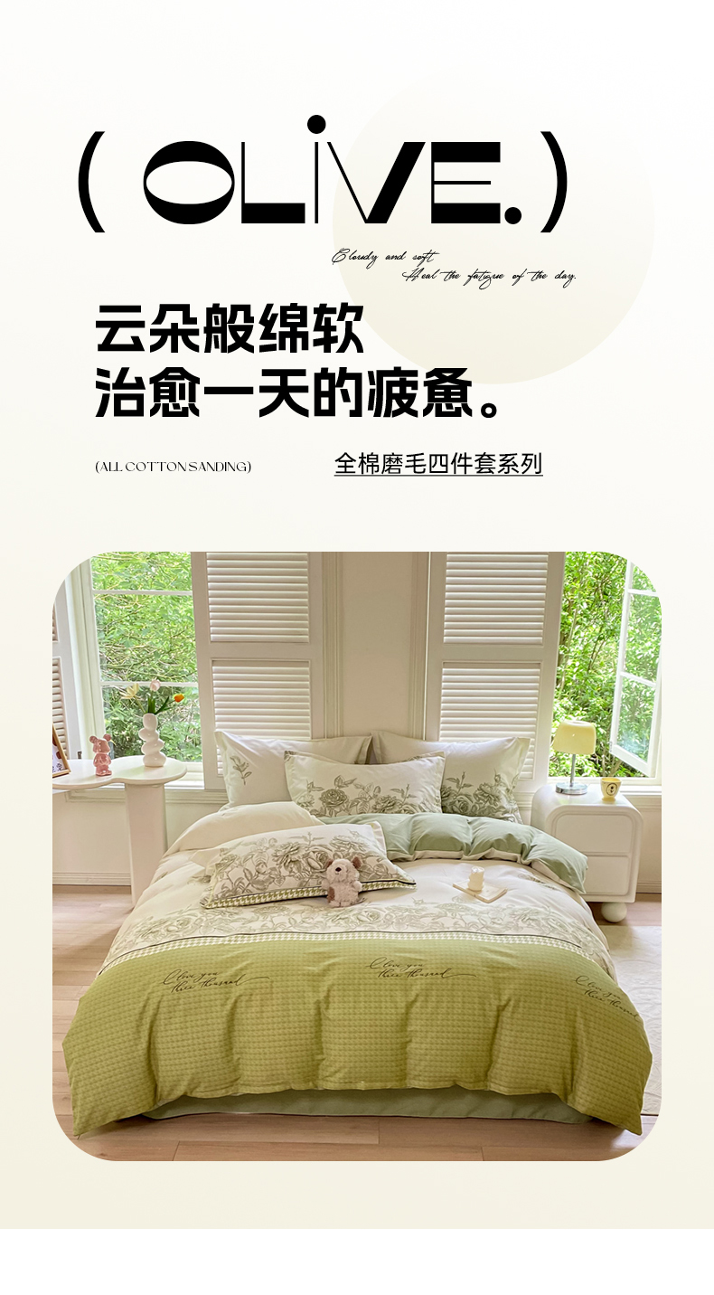 当前位置: 91家纺网 > 商品网购 > 床品套件 > 四件套 > 全棉普通四件套 > 优品阁 2024新款亲肤舒适全棉磨毛四件套学生三件套系列 温妮莎-绿