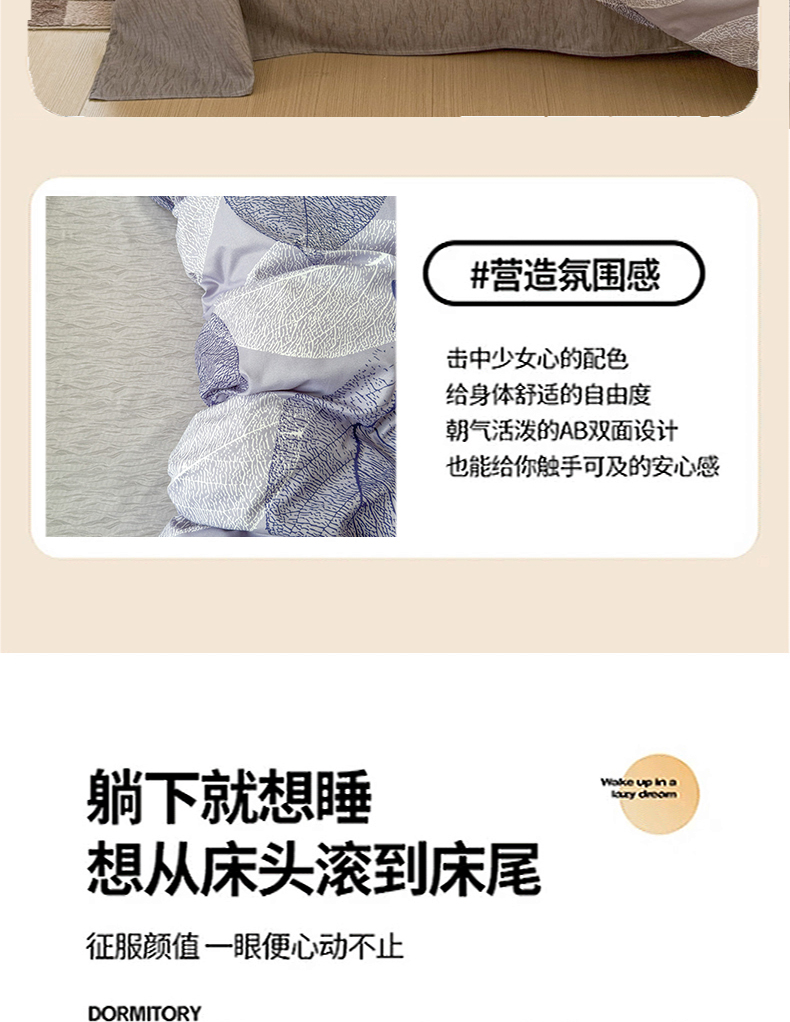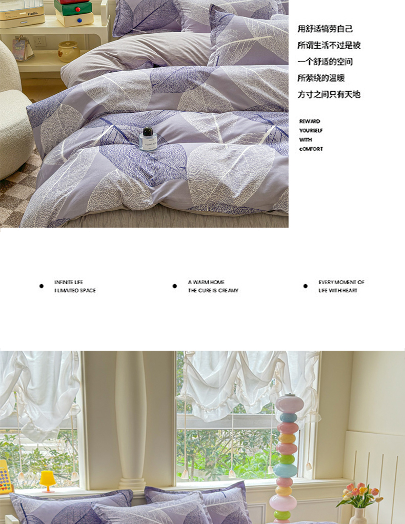 当前位置: 91家纺网 > 商品网购 > 床品套件 > 四件套 > 佑佳家纺 2025年新款铂金棉芦荟棉学生三件套四件套 单被套 单枕套「支持定做各种尺寸」 芜叶