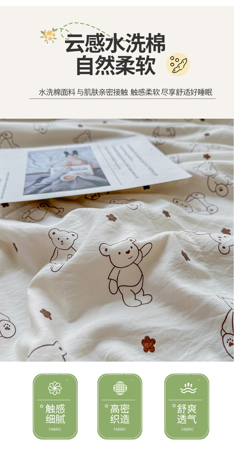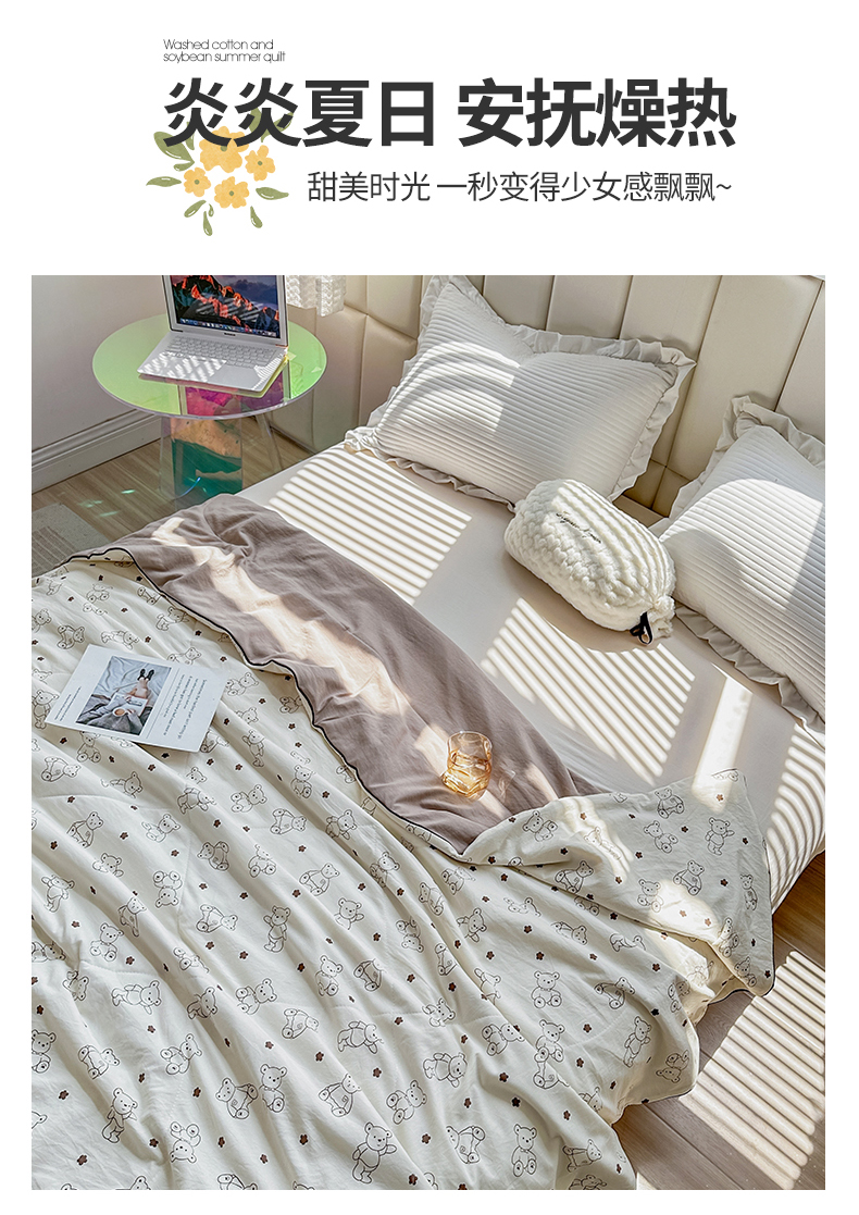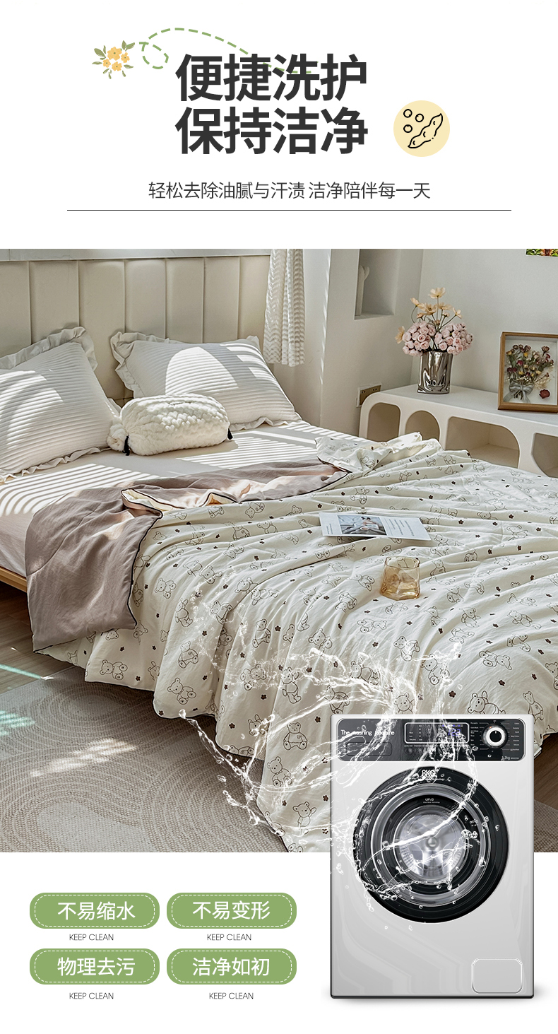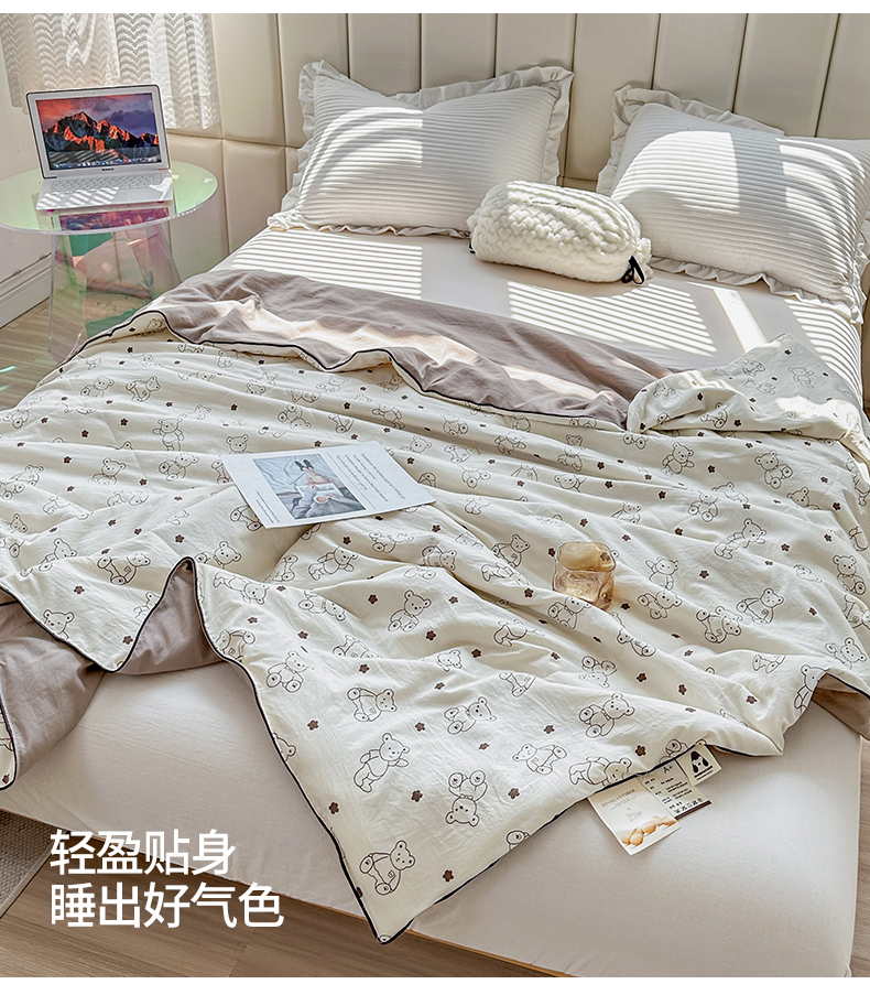 商品名称:富艺隆 2025新款A类水洗棉双层纱夏被水洗棉麻空调被直播爆款大豆夏被 小熊院长