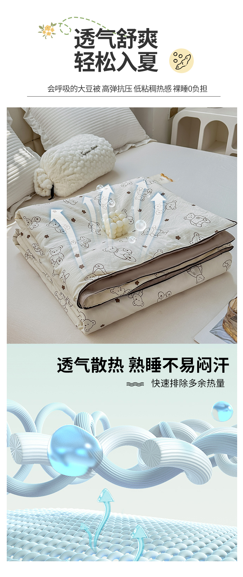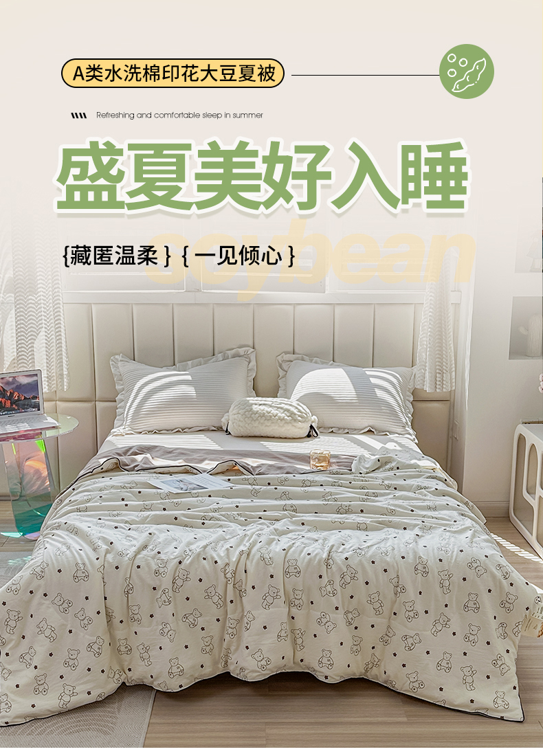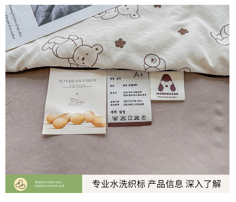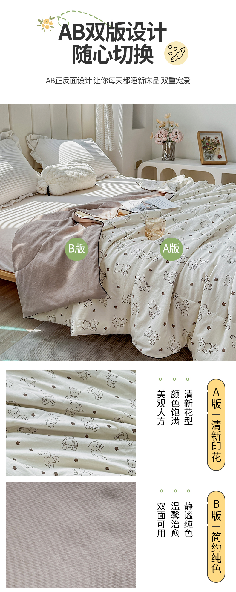 商品名称:富艺隆 2025新款A类水洗棉双层纱夏被水洗棉麻空调被直播爆款大豆夏被 小熊院长