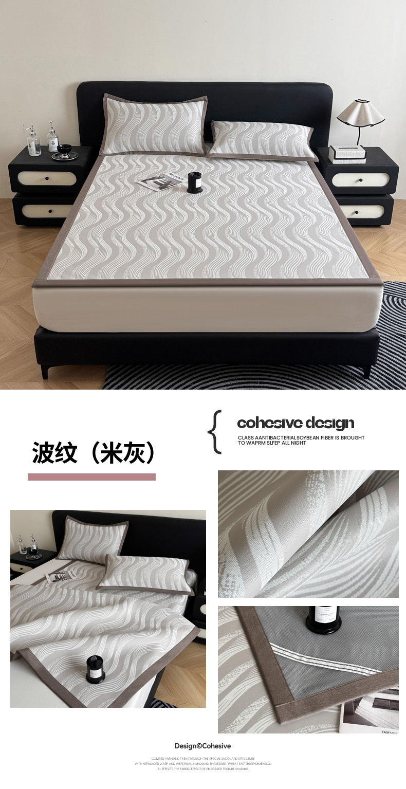 九花鹿2024新款A类大版碳光冰丝凉席床笠款三件套四件套,大版床笠款-熊宝贝