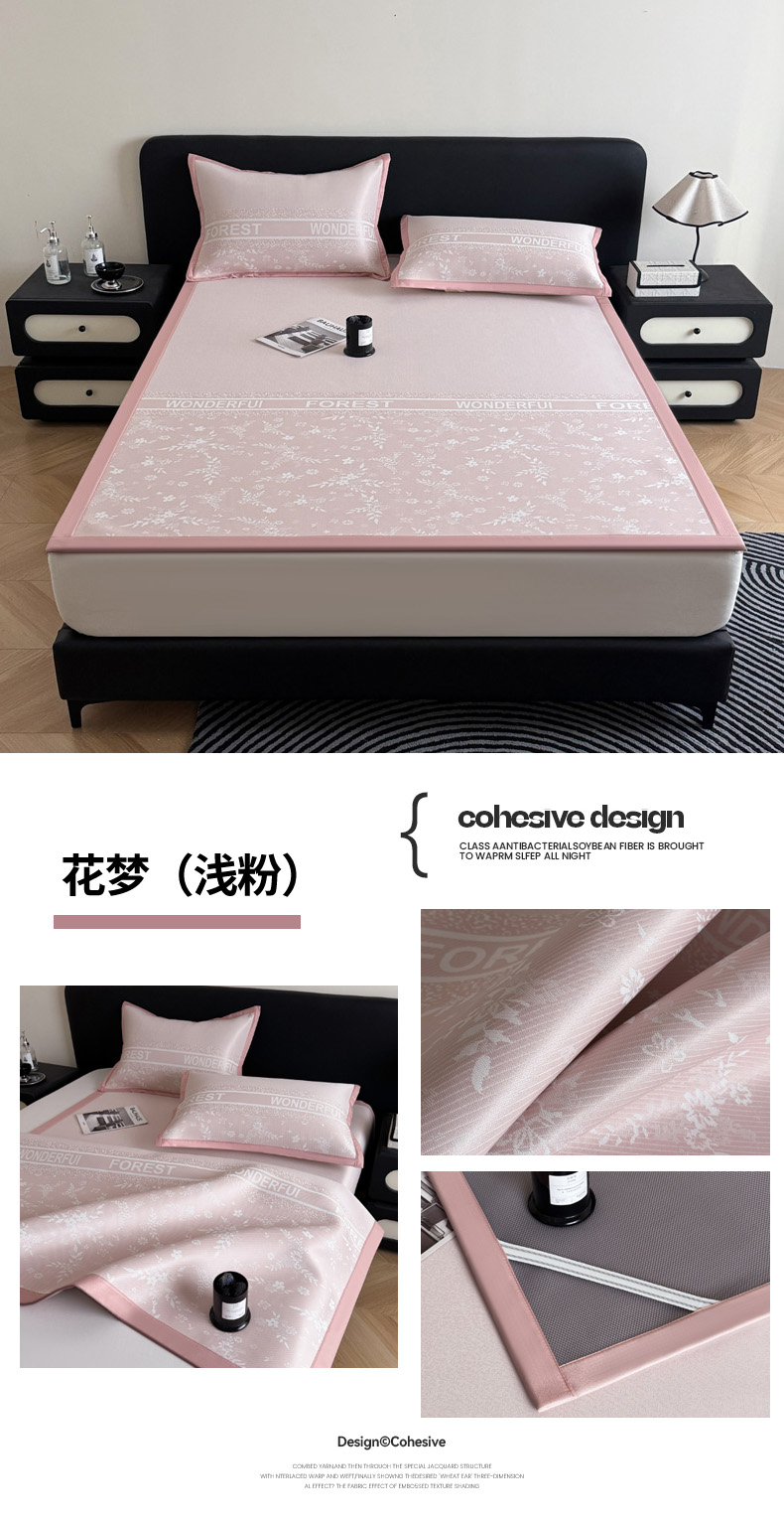 九花鹿2024新款A类大版碳光冰丝凉席床笠款三件套四件套,大版床笠款-甜心草莓