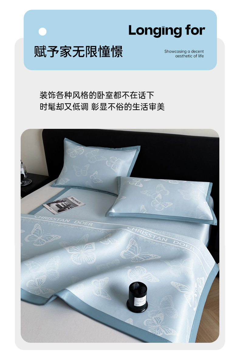 九花鹿2024新款A类大版碳光冰丝凉席床笠款三件套四件套,大版床笠款-漂亮女孩