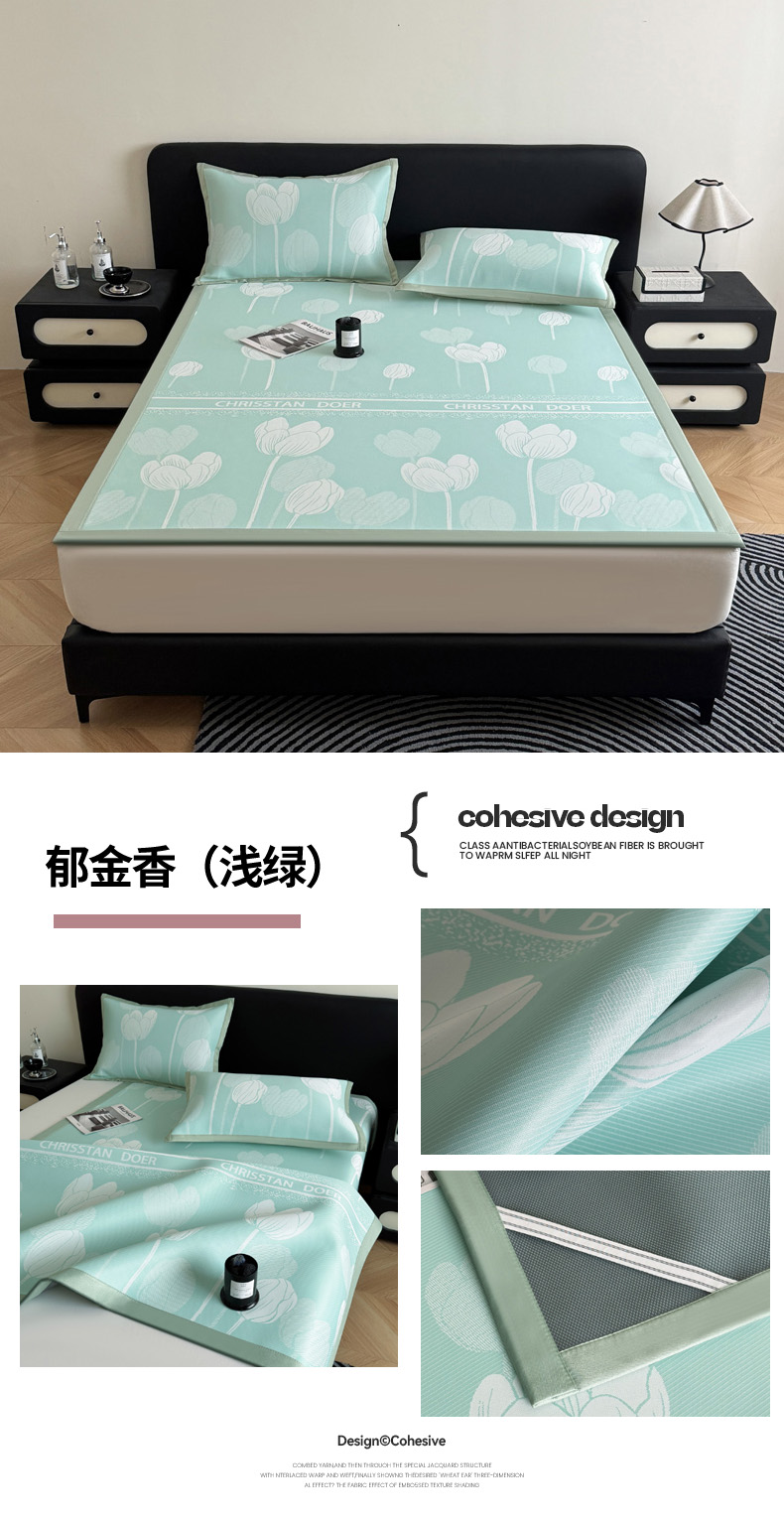 九花鹿 2025新款A类PE凉感提花冰丝凉席软凉席可水洗可机洗 郁金香(浅绿)