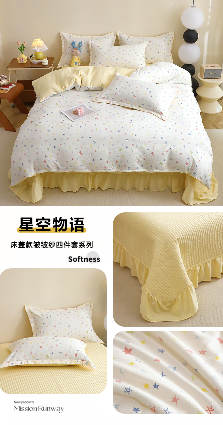 商品名称:一比一家纺 2025新款云感皱皱双层纱床盖四件套 星空物语