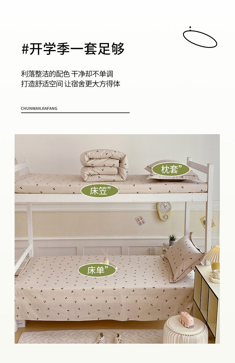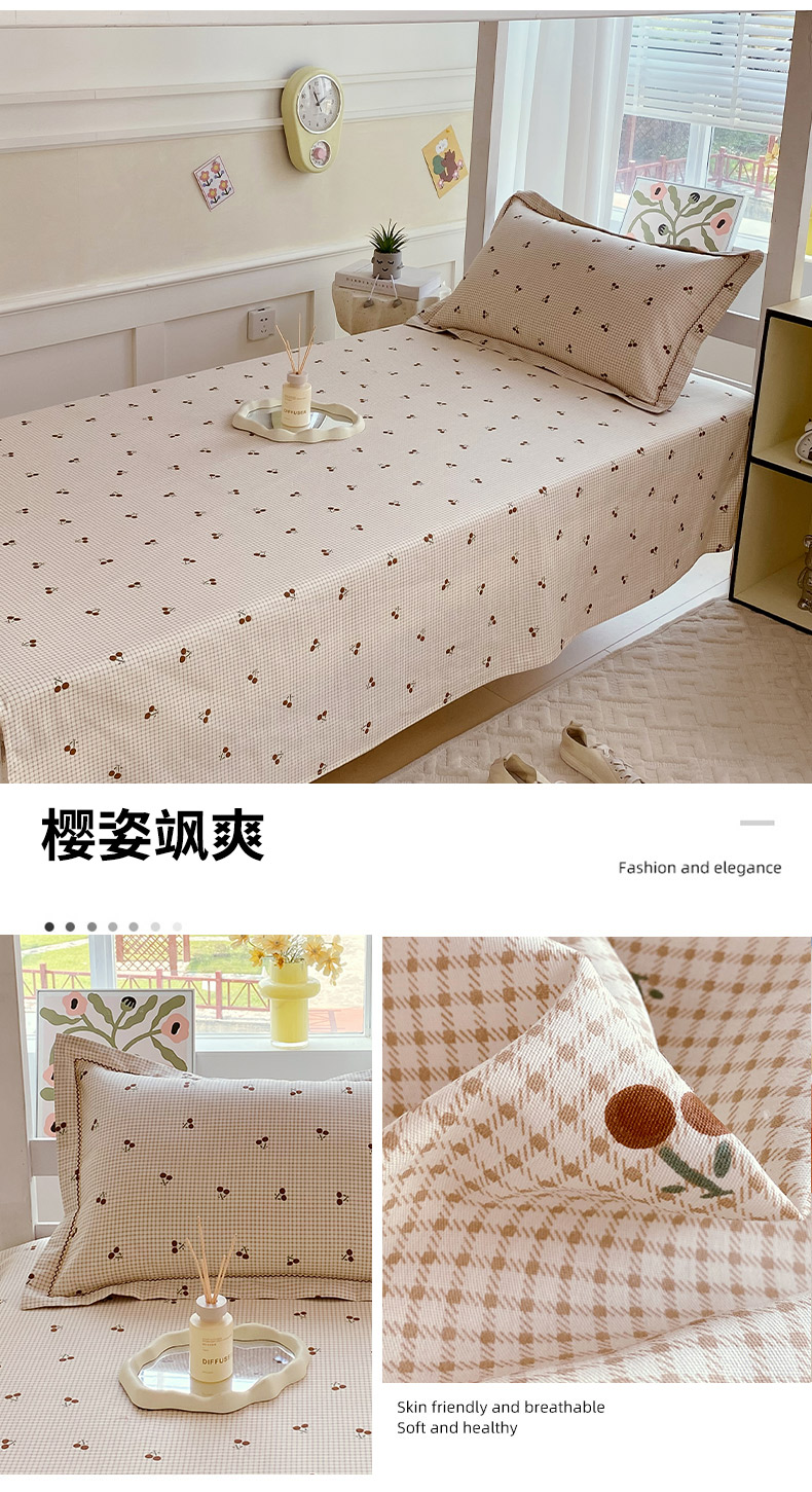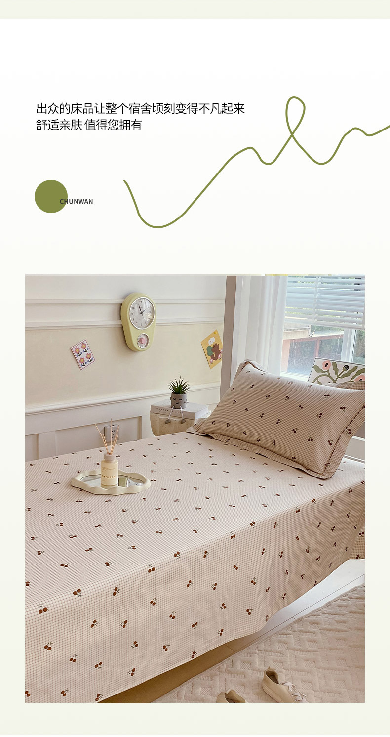 商品名称:春皖家纺 2025新款学生季全棉纯棉13070印花单床单 床单单件 樱姿飒爽