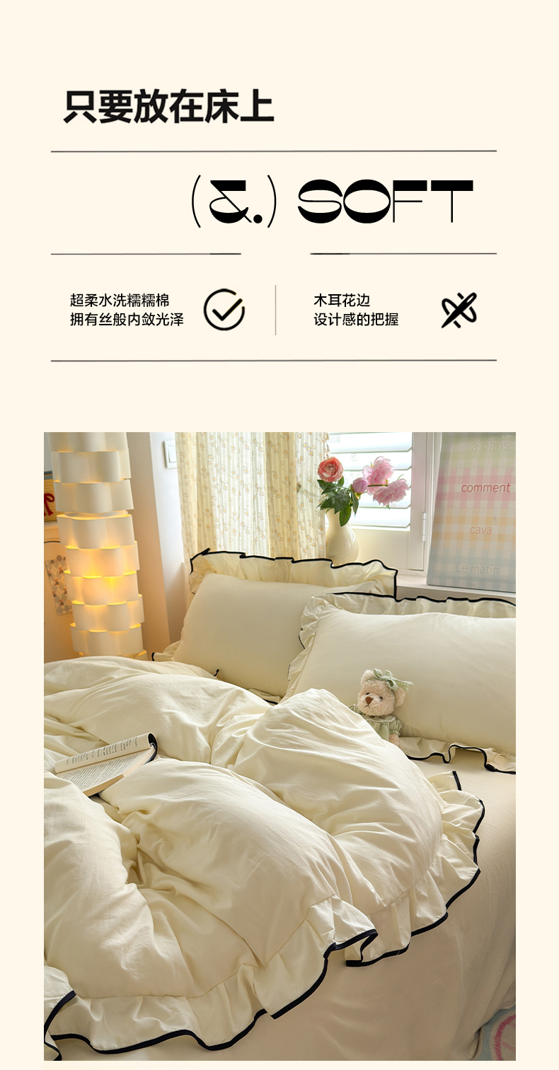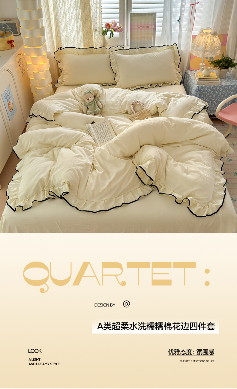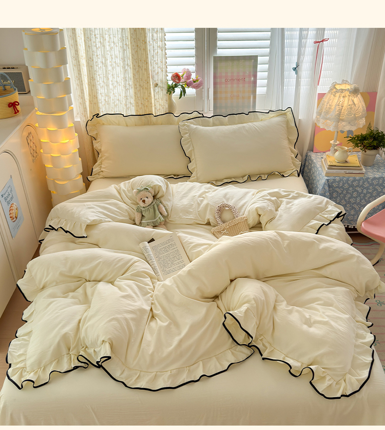 当前位置: 91家纺网 > 商品网购 > 床品套件 > 四件套 > 其它四件套 > 喜颜 2025新款爆款超柔水洗糯糯棉花边四件套学生宿舍单人三件套 芝士黄-花边款