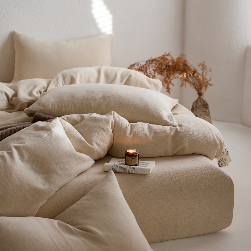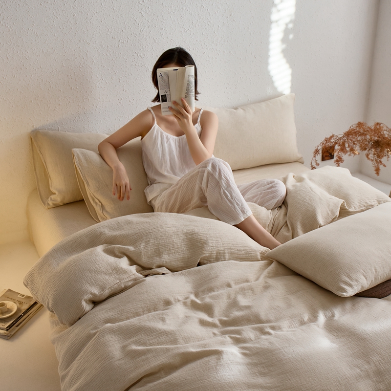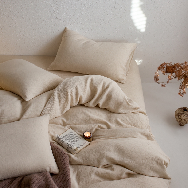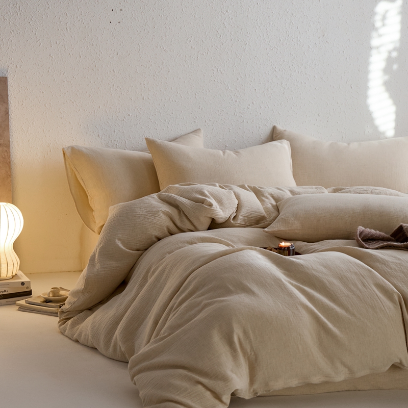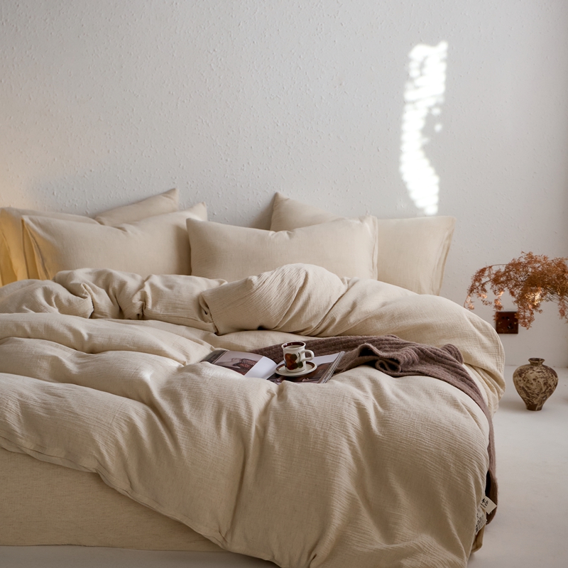 商品名称:清雅福2025秋冬新品棉麻双层皱皱纱四件套系列 咖啡知己(米)