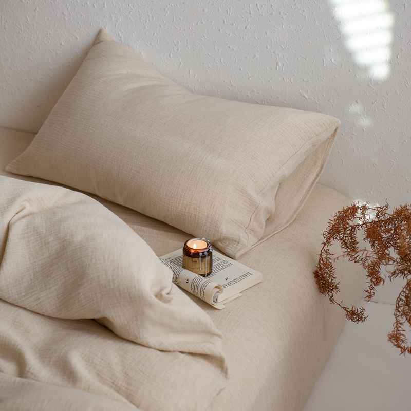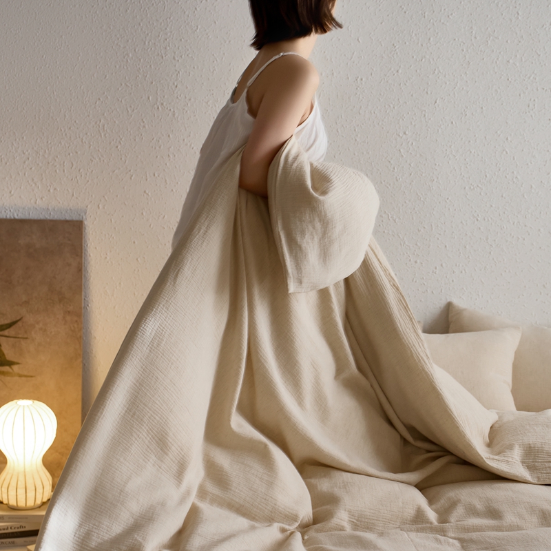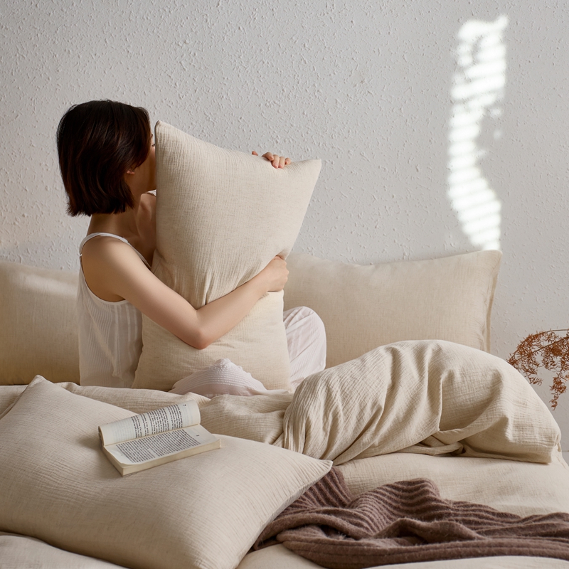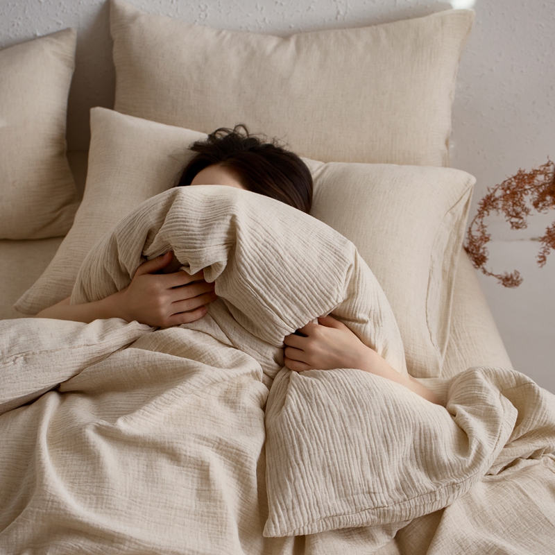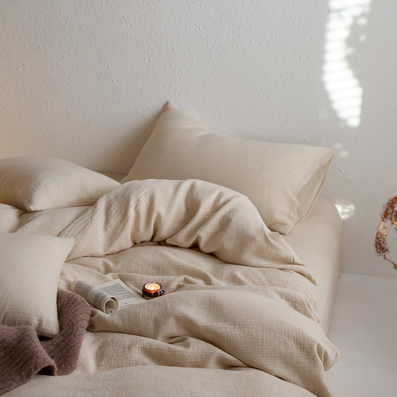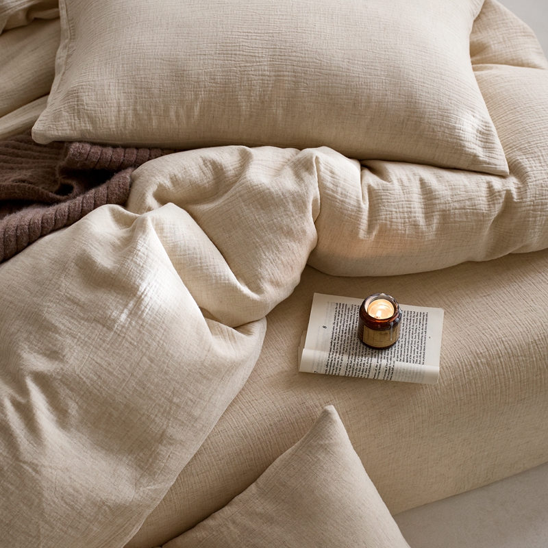 商品名称:清雅福2025秋冬新品棉麻双层皱皱纱四件套系列 咖啡知己(米)