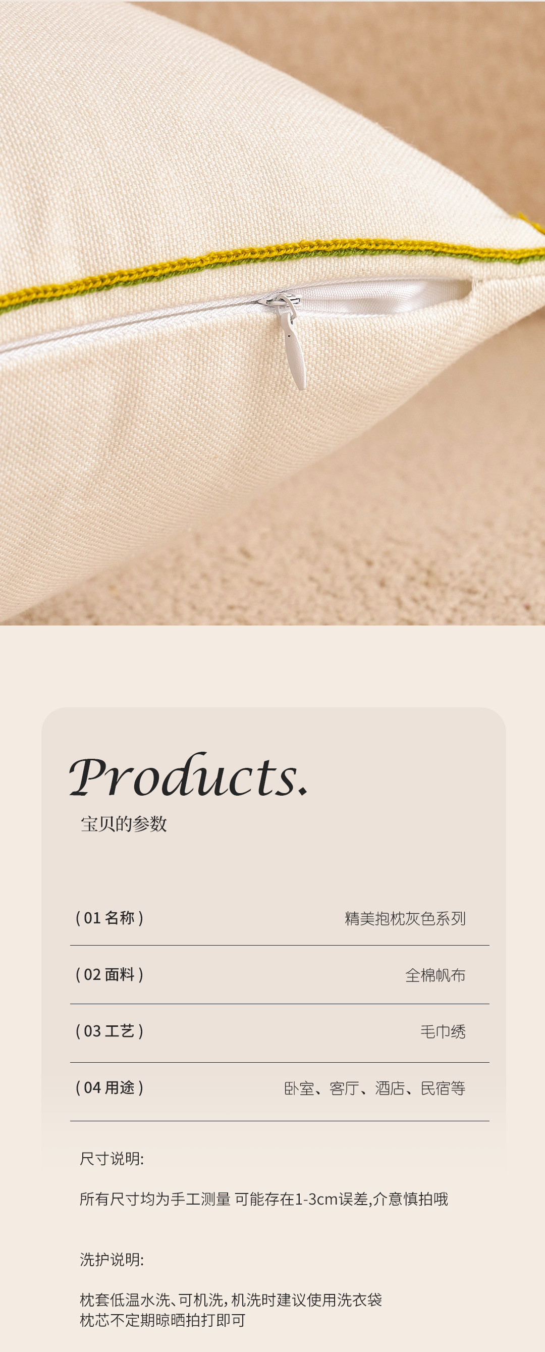 商品名称:诺可 2025新款全棉毛巾绣抱枕外贸跨境电商直播纯色几何系列-灰色 灰-三角