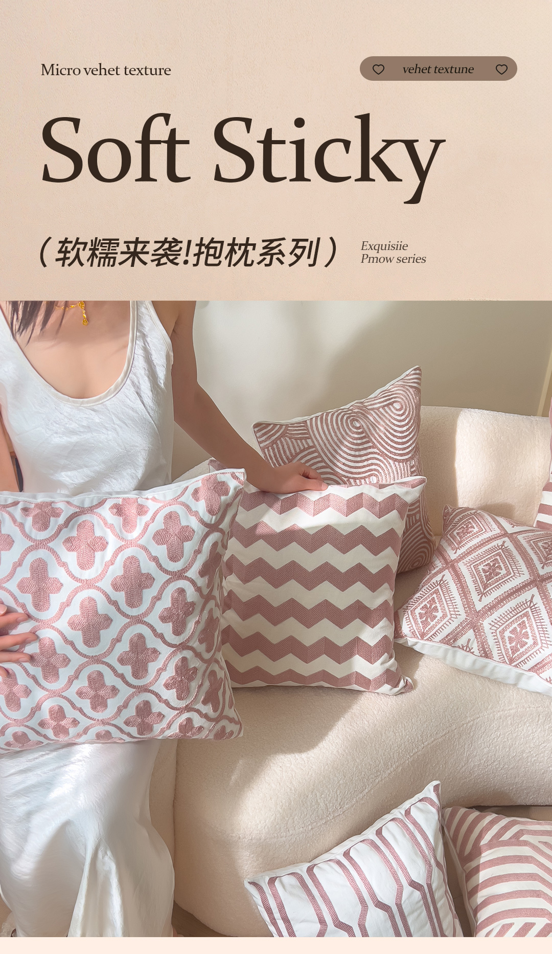 (总)诺可 2025新款全棉抱枕外贸跨境电商直播纯色几何系列-粉色,模特图仅供参考,组合图仅供参考,粉-波浪,粉-波浪点点,粉-方胜,粉-橄榄纹,粉-花菱纹,粉-回形,粉-几何,粉-涟漪,粉-菱形方格,粉-弥格,粉-三川,粉-十字,粉-四方格,粉-铜钱纹,粉-团簇,粉-漩涡,粉-叶子,粉-花瓣