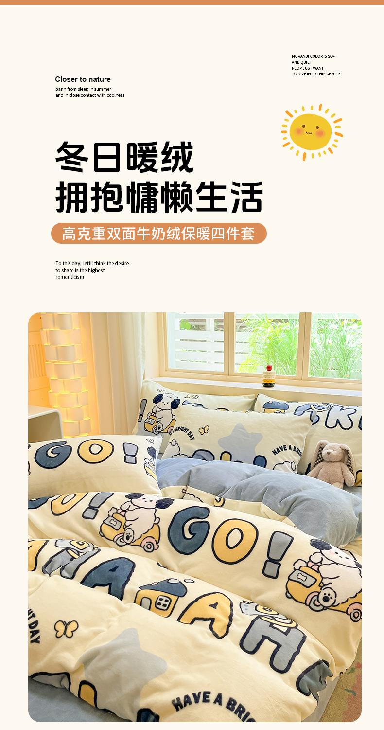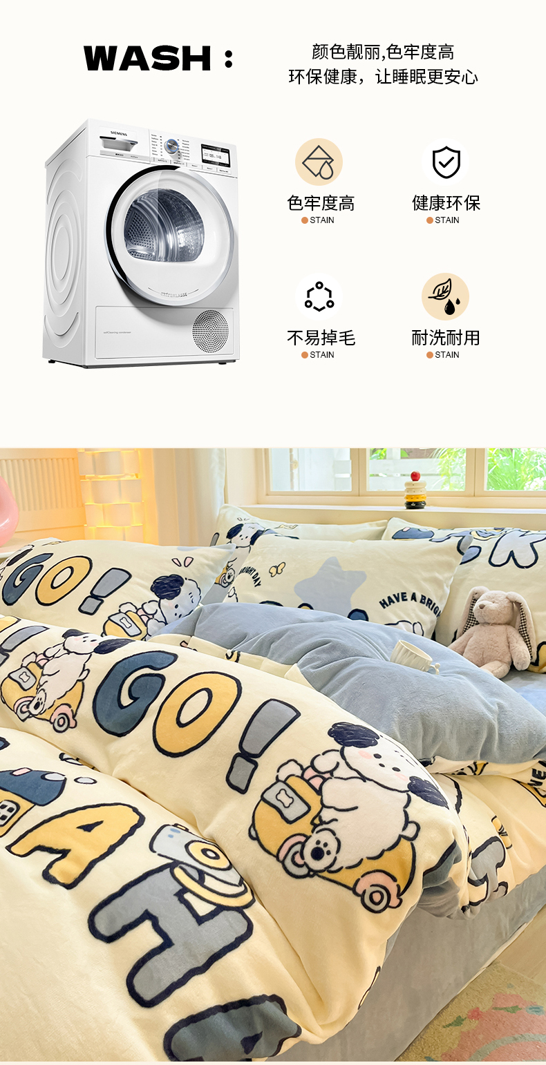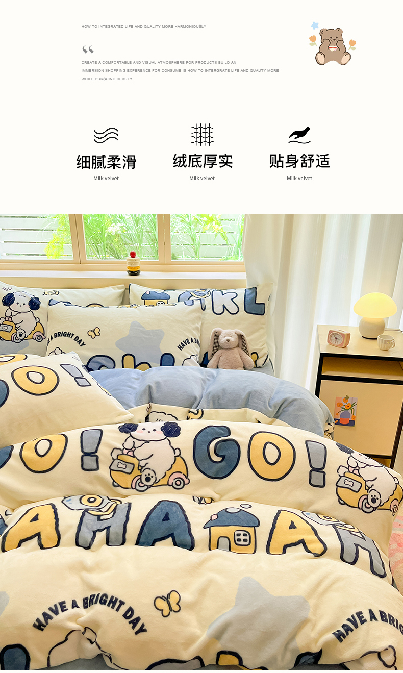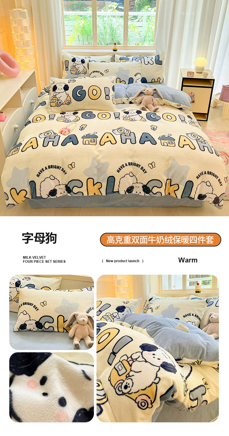 当前位置: 91家纺网 > 商品网购 > 床品套件 > 四件套 > 牛奶绒四件套 > 铭宣 2025新款高克重牛奶绒印花保暖四件套床单床笠单被套款 字母狗
