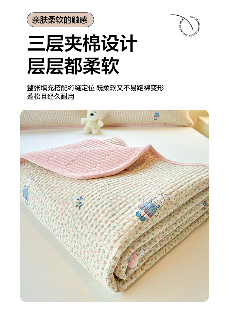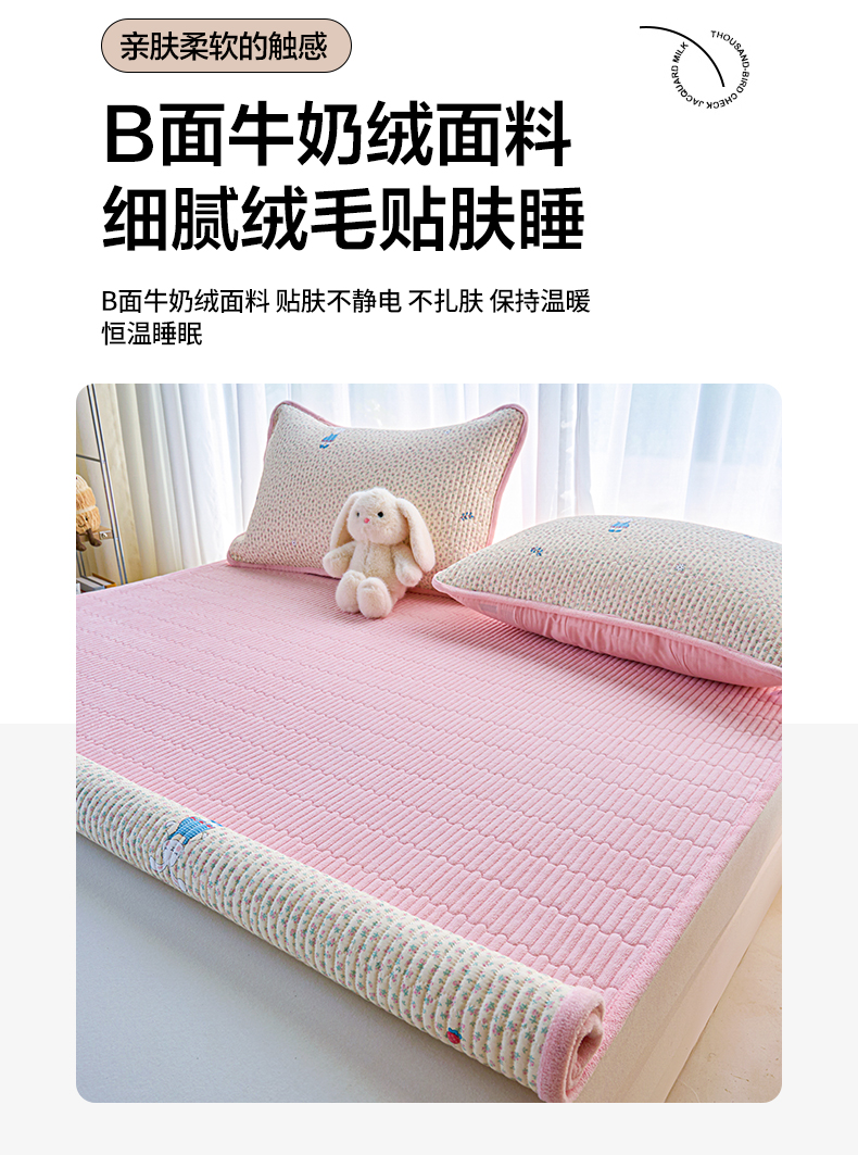• 91家纺网 家纺一手货源 找家纺 X猫先生 2025新款棉加绒床垫一面全棉一面牛奶绒床褥垫软床垫床盖四季通用 奶呼小兔(A棉B绒)
