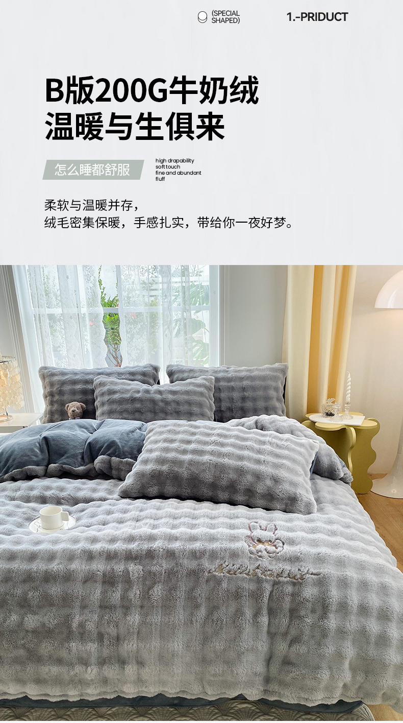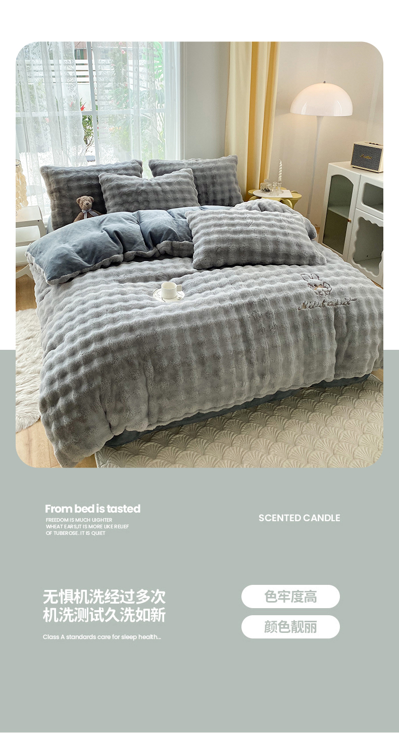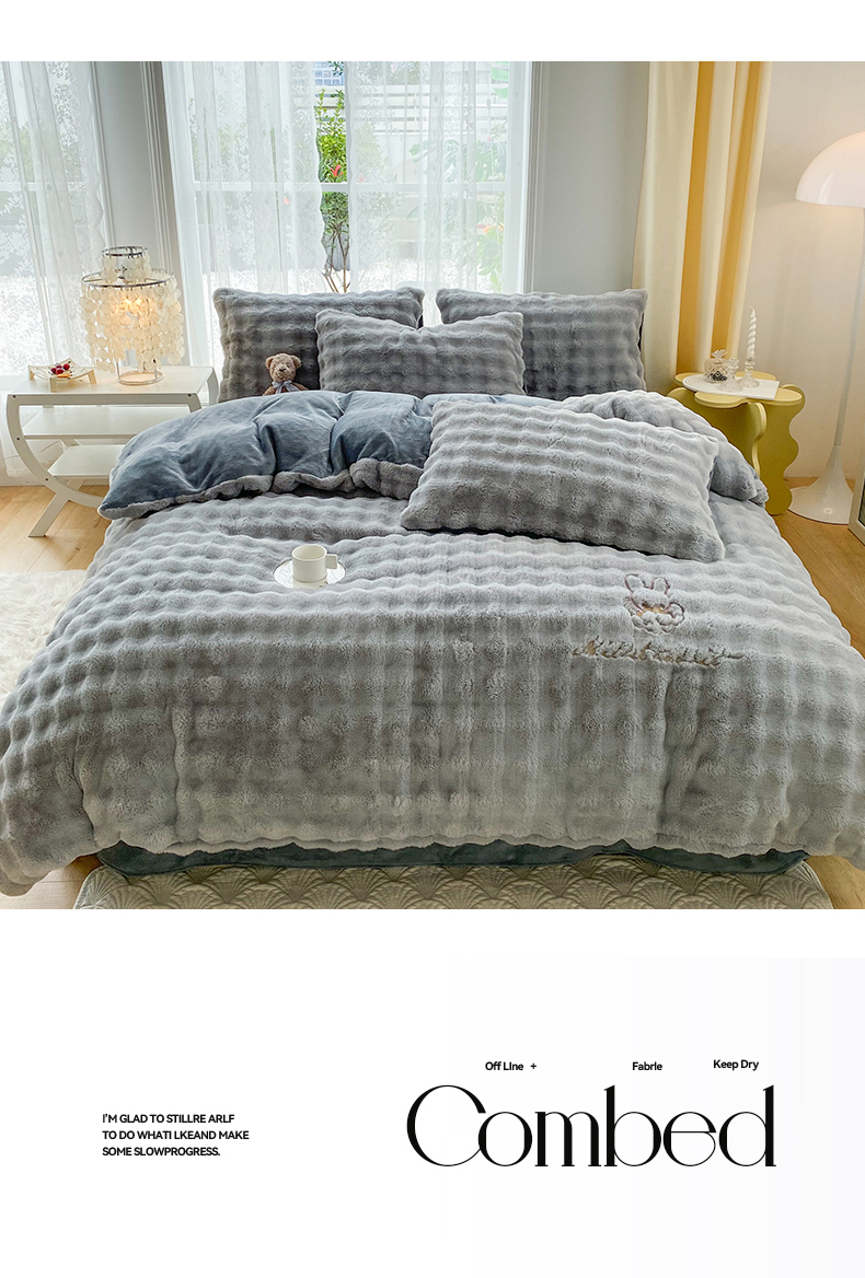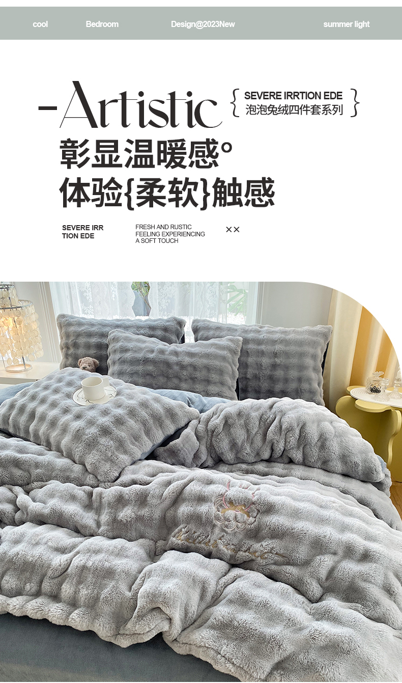 当前位置: 91家纺网 > 商品网购 > 床品套件 > 四件套 > 其它四件套 > 潮邦创意家居 2025新款小米兔泡泡兔绒保暖四件套 米兔灰