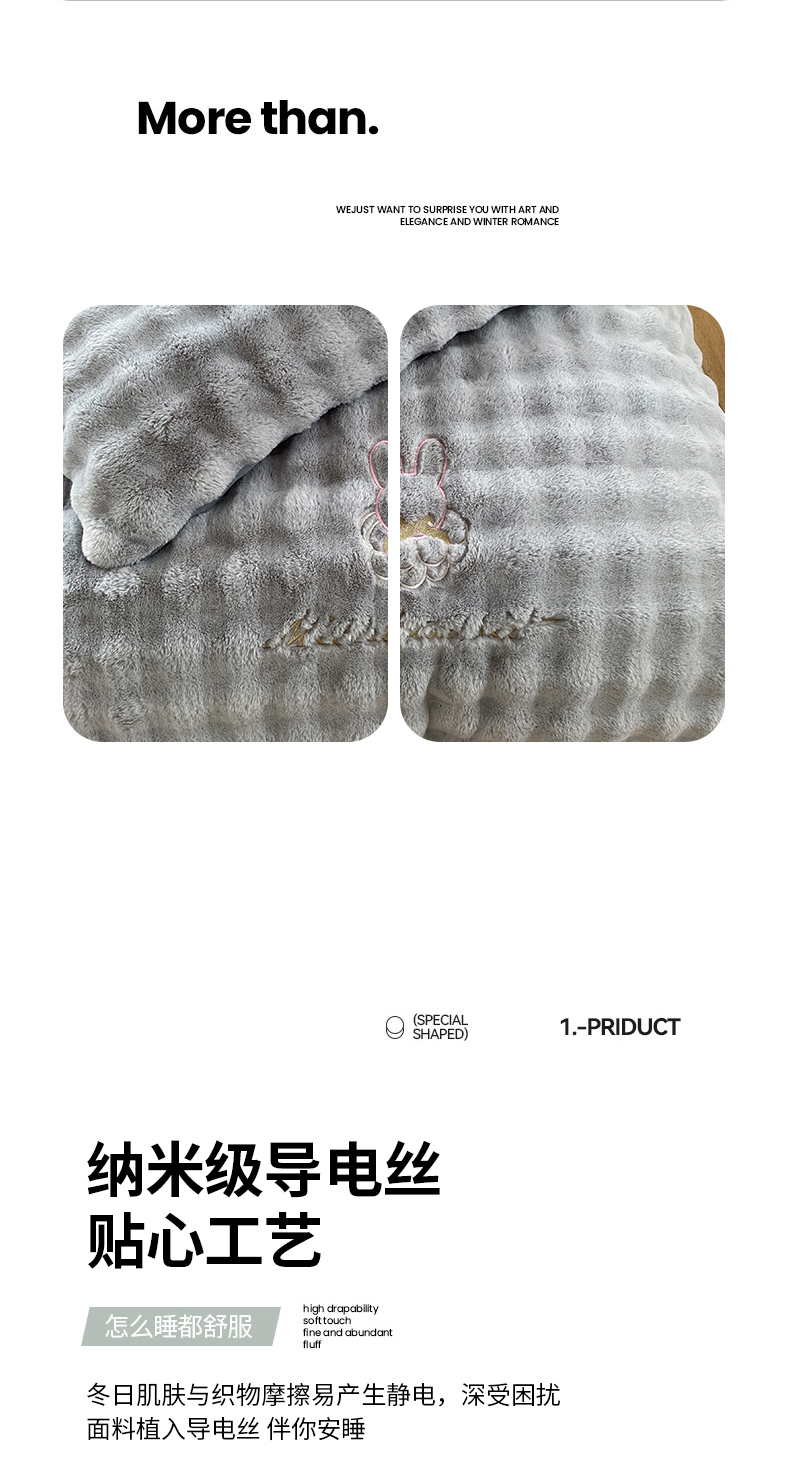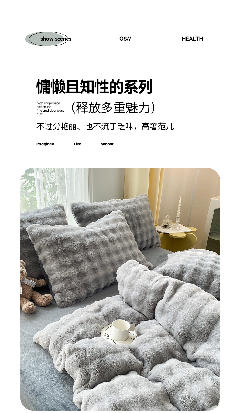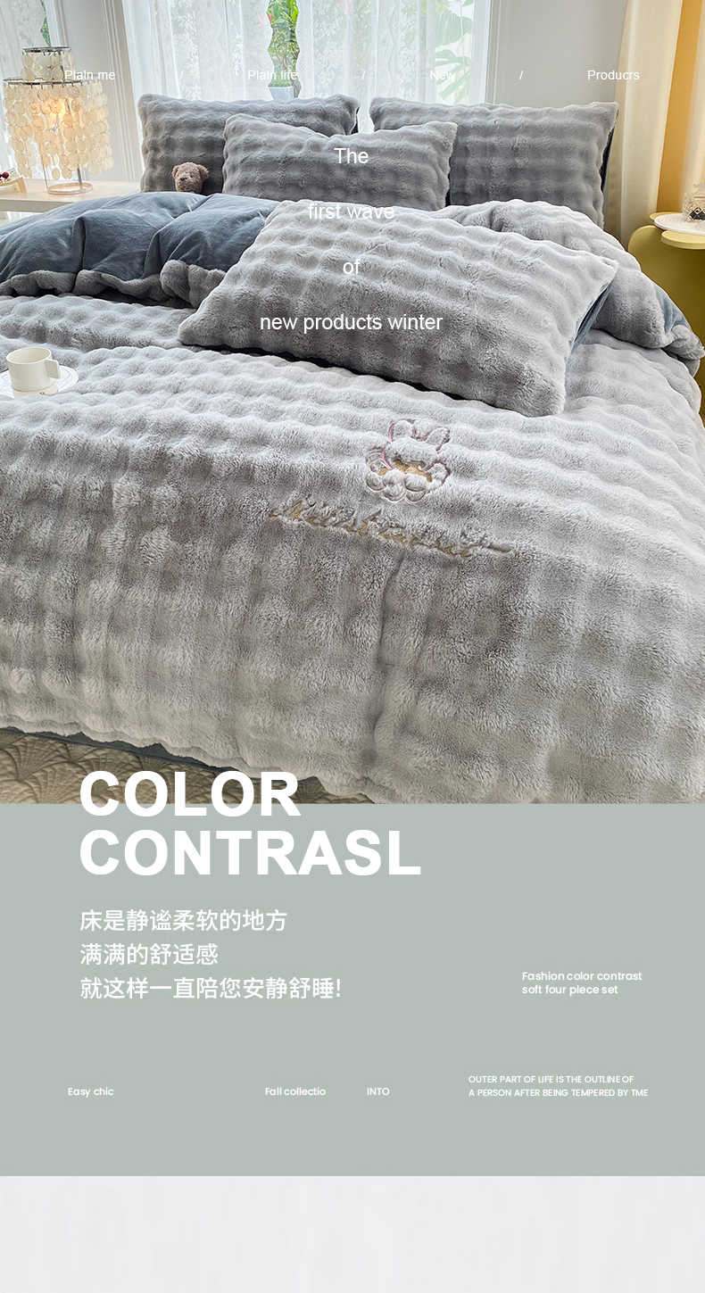 当前位置: 91家纺网 > 商品网购 > 床品套件 > 四件套 > 其它四件套 > 潮邦创意家居 2025新款小米兔泡泡兔绒保暖四件套 米兔灰