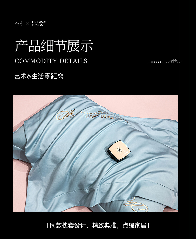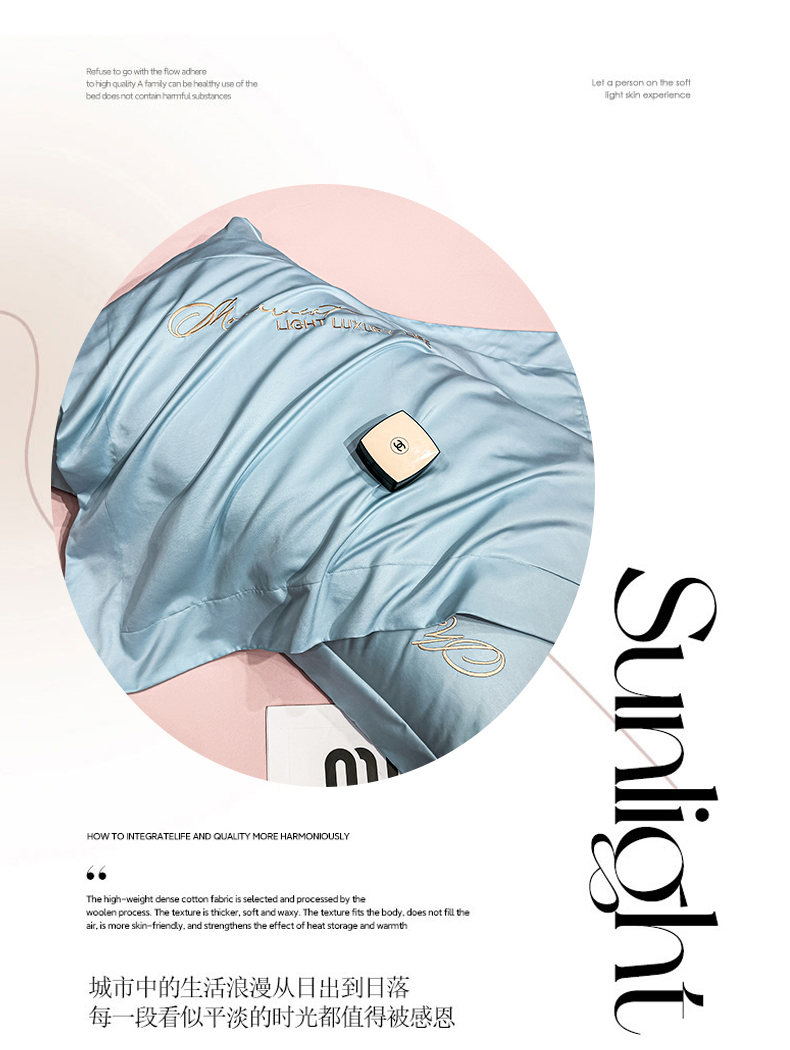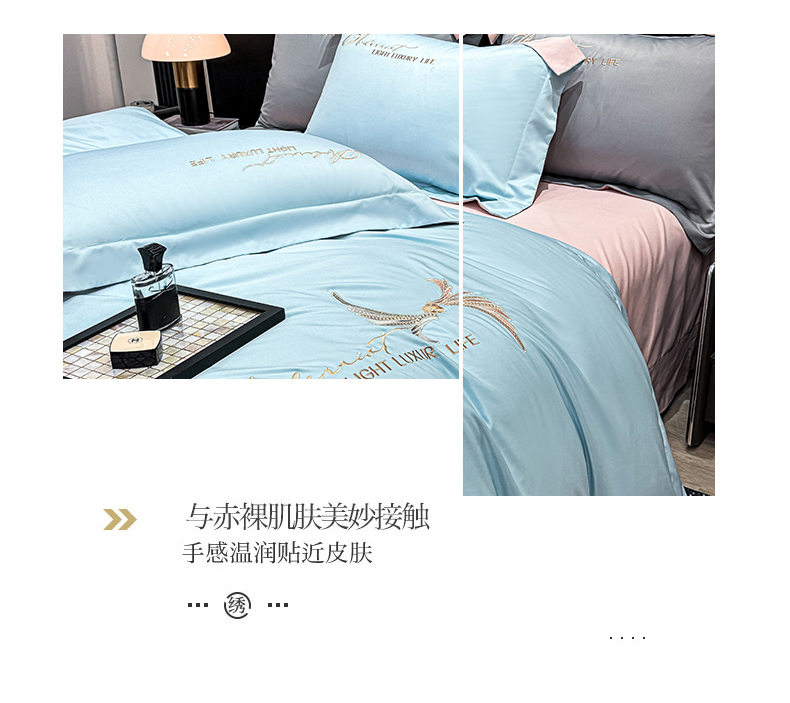 商品名称:悦织湾家纺 亲肤120克水洗棉磨毛刺绣纯色四件套2025新款轻奢韩版公主风精致床上用品绣花4件套 宽境天蓝