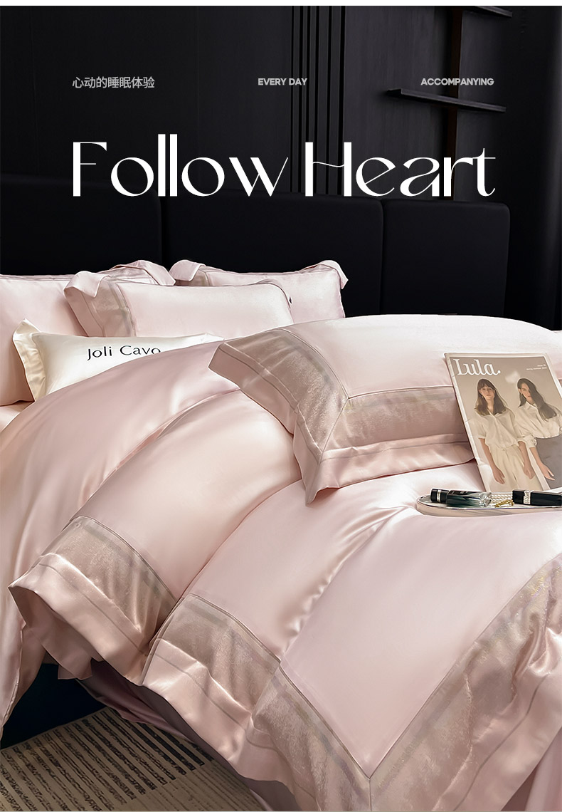 2025轻奢风A类贡缎长绒棉四件套纯棉全棉重工刺绣被套床单高端拼接床上用品 馥雅-慕斯粉